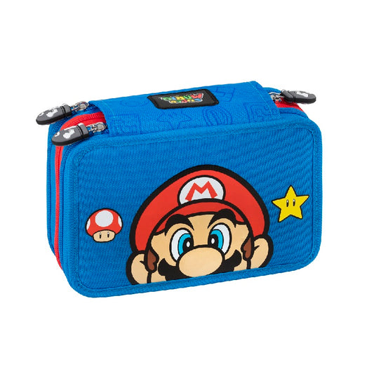 Ученически несесер Super Mario Tricolore със съдържание с 3 отделения