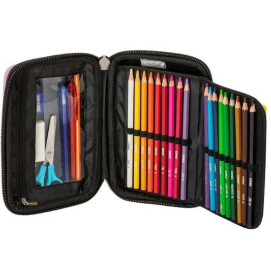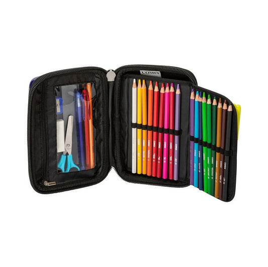 Ученически несесер със съдържание COMIX RAINBOW FUCHSIA 2024