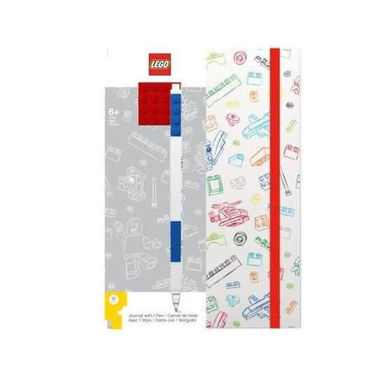 LEGO бял тефтер с червен LEGO елемент 4х4 + син гел химикал