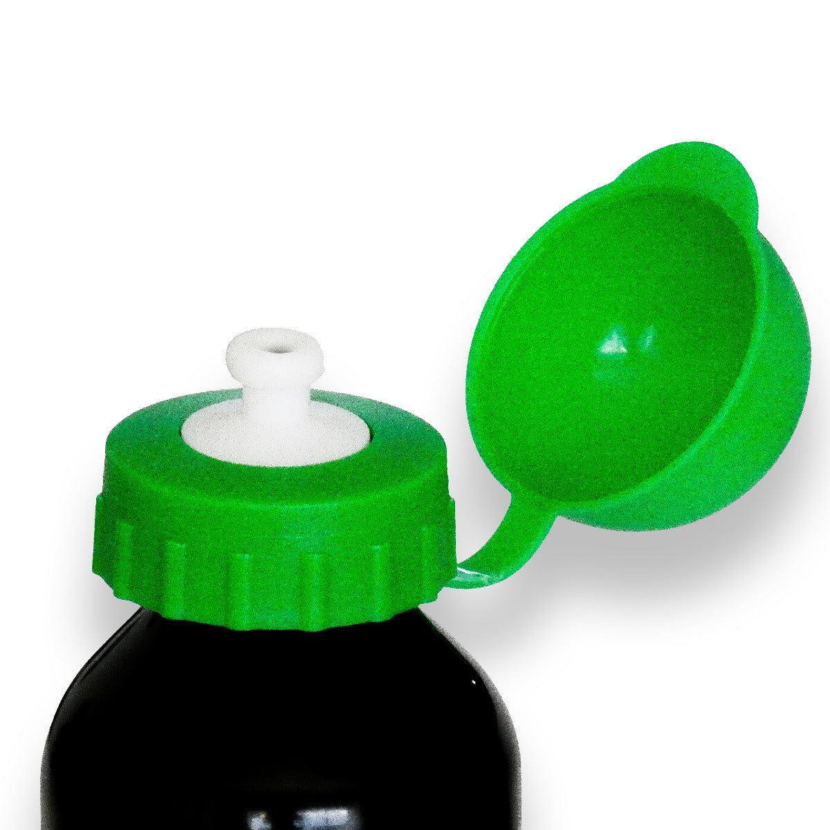 Зелена или черна пластмасова капачка на винт предпазва гърловината на бутилката. Най-горното капаче затвваря бял накрайник от който се пие вода.