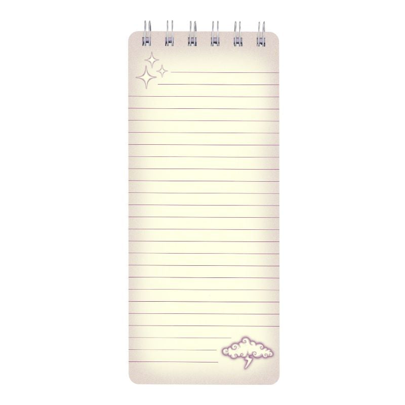 Правенето на списъци със задачи е още по-лесно и забавно с този практичен бележник с химикал. Той е вертикален има спирала и се затваря с ластична лента, към която може да се прикрепи химикала, който е с черно мастило. Бележникът съдържа 150 страници.