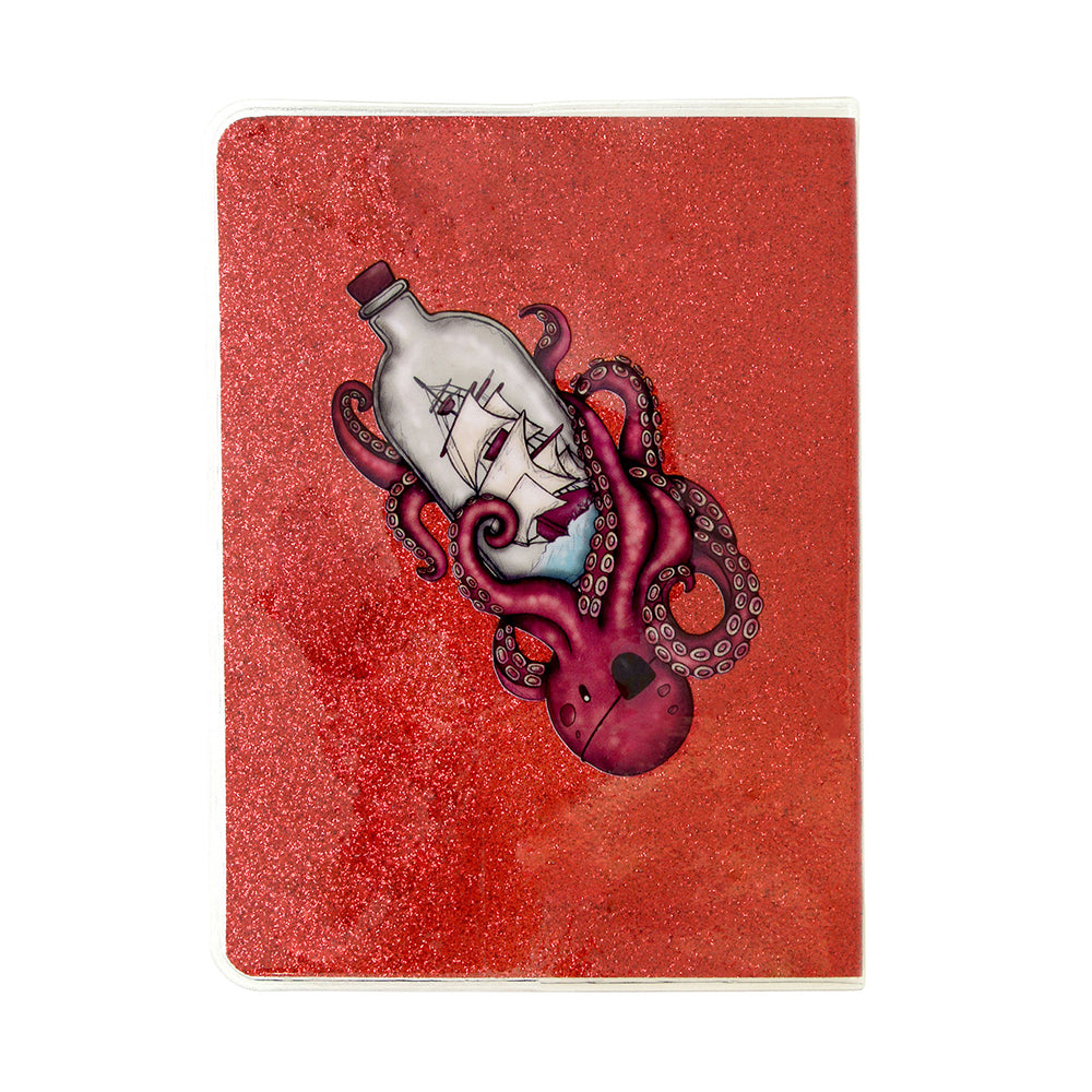 От едната страна има принт на Gorjuss момиче с червени коси и сърце с надпис, а от другата - кораб в бутилка и червен октопод.