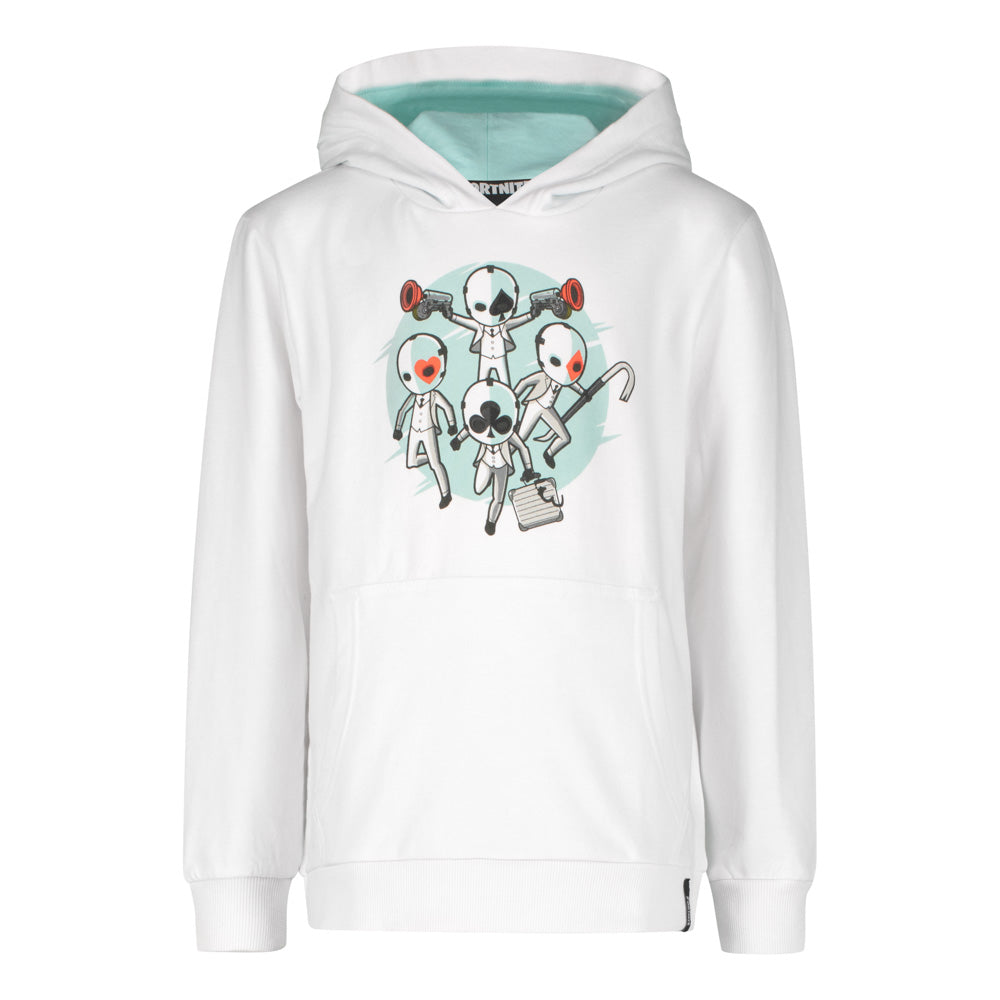 Бял суитчър, подходящ за феновете на играта Fortnite. Той е с дълъг ръкав и качулка без връзки, за по-семпла визия. В предната част на суитчъра има тематична илюстрация с герои от играта.