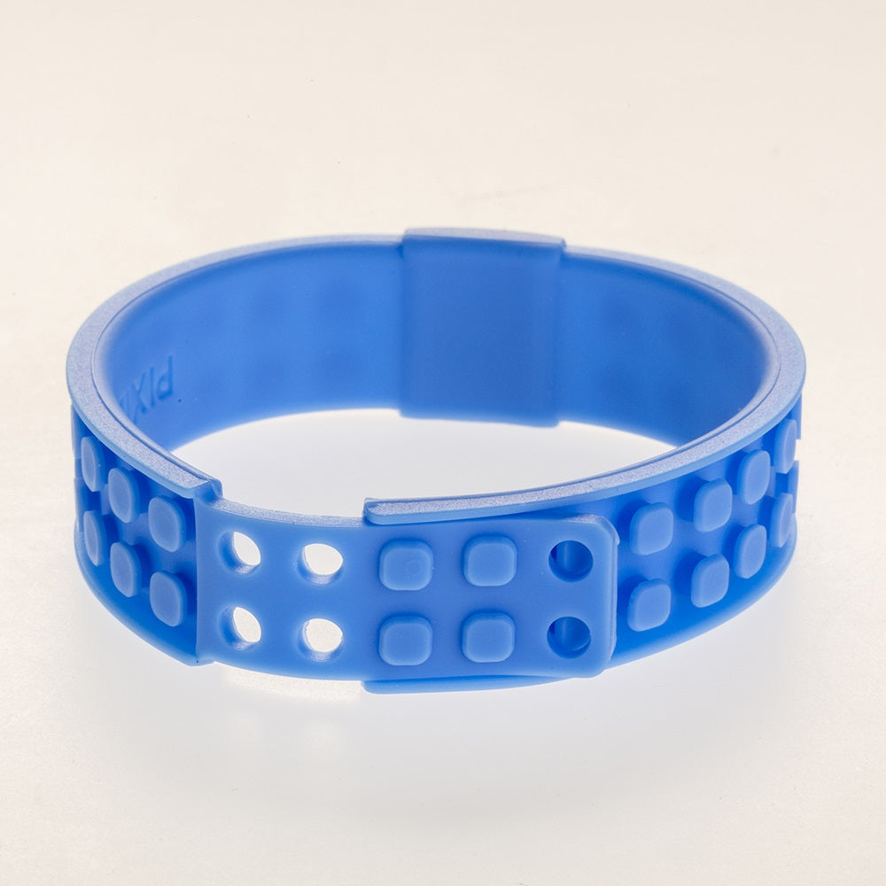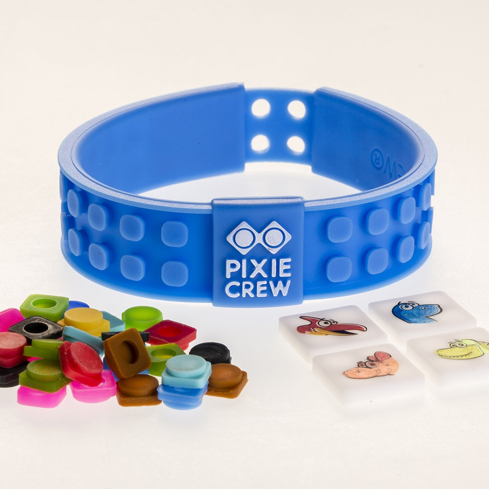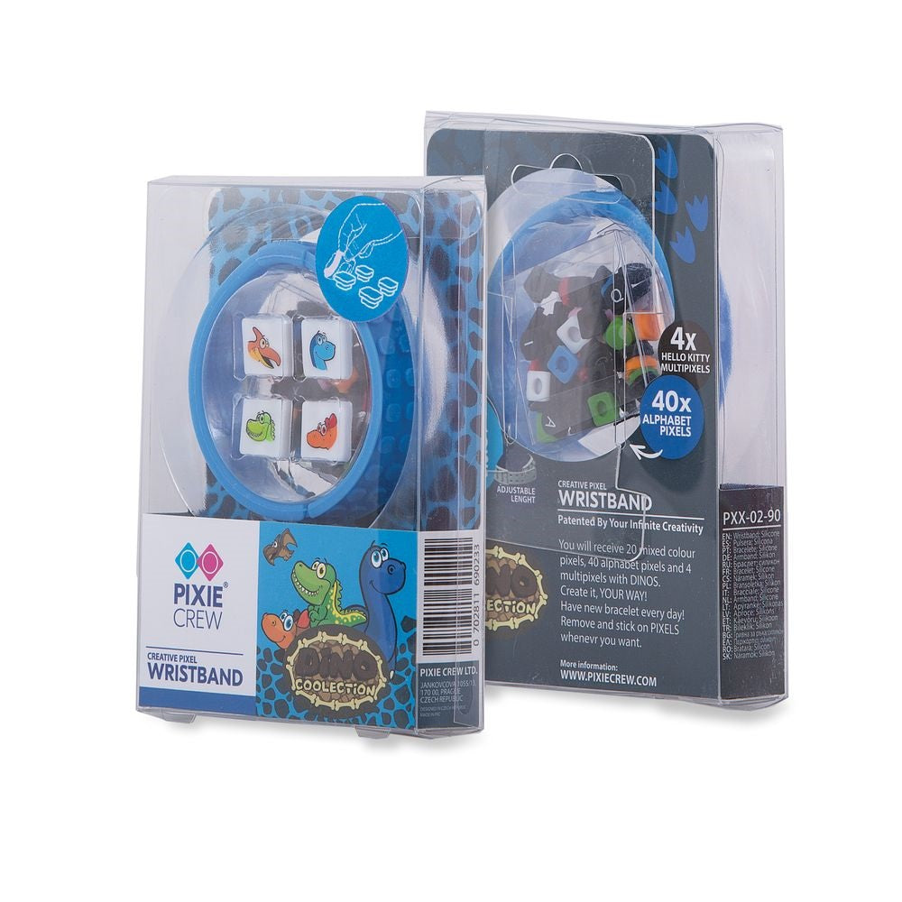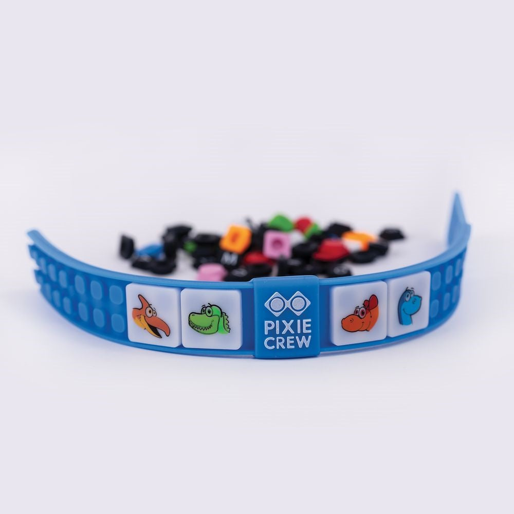 Универсална силиконова гривна, която не е само за деца! Развихрете въображението си и изразете своето настроение със стил. Гривната е с регулируема ширина, което обещава ще пасне на деца от всички възрасти, а синият ѝ цвят и динозавърска тематика я прави чудесен подарък за момчетата. Тя може да бъде декорирана по множество пъти и по такива начини, че да отива на облеклото. В комплекта ще откриете 4 мултипиксела и 30 малки многоцветни пиксела. Хубавото е, че пикселите могат да се използват повторно във всички продукти на PIXIE CREW.