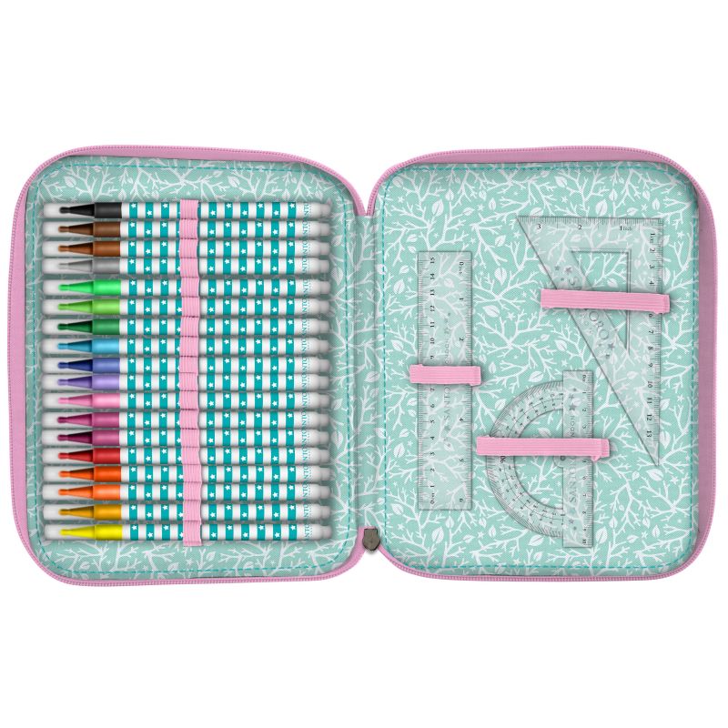 Несесерът е в характерния за Santoro Gorjuss приказен дизайн, вдъхновен от горския свят. Той разполага с две отделения, в които има всичко необходимо за ученика: