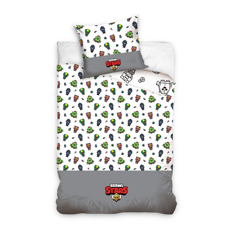 Спалното бельо Brawl Stars ще се хареса на всеки малък любител на играта. Изработката му е от 100% памук, който е приятен на допир, като обещава истинско удобство и спокоен сън. Комплектът се състои от двулицев плик за горна завивка в размер 140 х 200 см и калъфка за възглавница в размер 70 х 90 см.