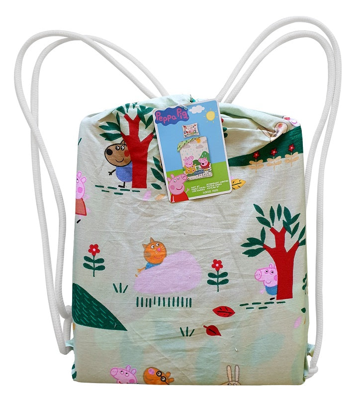 Пепа Пиг и Джордж обичат да играят в дъжда и да скачат в локвите. Точно това е и изобразено на детския спален комплект. Изработката му е от 100% памук, който е приятен на допир и обещава спокоен сън. Комплектът се състои от плик за горна завивка в размер 140 х 200 см и калъфка за възглавница в размер 70 х 90 см.