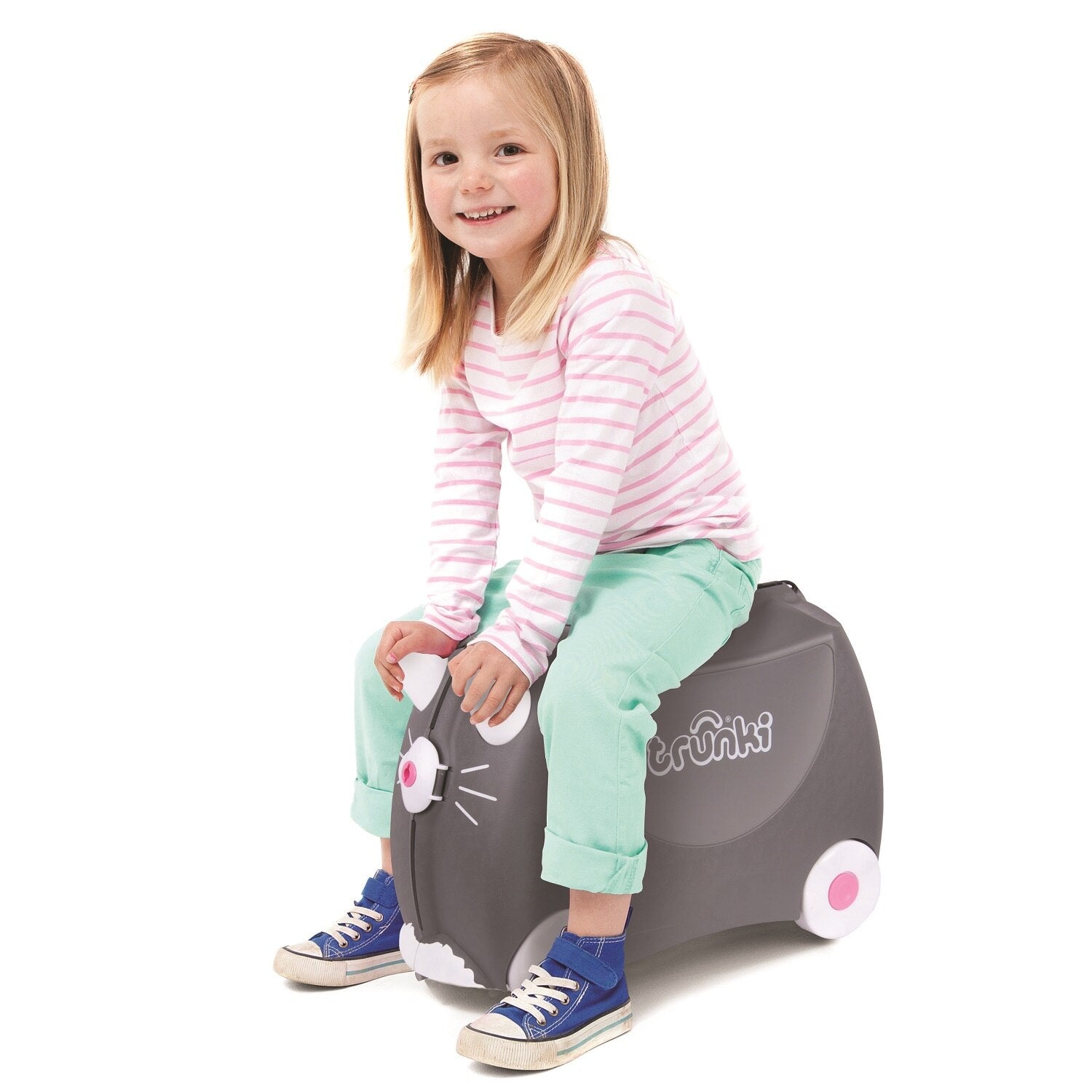 Куфарчето BENNY THE CAT от марката Trunki е чудесен избор за деца, които обичат да пътуват. Тези куфарчета са не само практични, но и забавни, защото са създадени във формата на различни животни и персонажи. BENNY THE CAT е един от популярните модели, който изглежда като сладко коте.