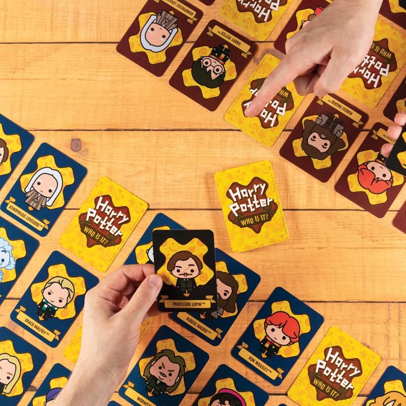 Всичко, от което се нуждаете, включително лесни за следване инструкции за игра, се доставя в отпечатаната подаръчна кутия, която също е удобна за безопасно съхранение на картите, когато играта не се използва. Общо има 72 карти със символи, разделени на три отделни пакета с цветови кодове. Harry Potter Who Is It е игра за двама играчи и е подходяща за всички на възраст над 6 години. Първият човек, който познае правилно картата на опонента, печели, но бъдете внимателни, тъй като неправилното предположение означава автоматична печалба за другия играч.