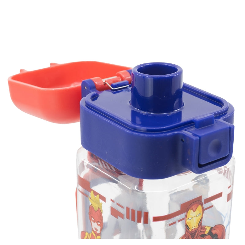 Бутилка за вода Avengers ще позволи на децата да останат хидратирани. Тя е с квадратна форма, разполага със специално затваряне с бутон, което предпазва водата от изливане. Бутилката е със спортен дизайн и има удобна дръжка. Не съдържа BPA.