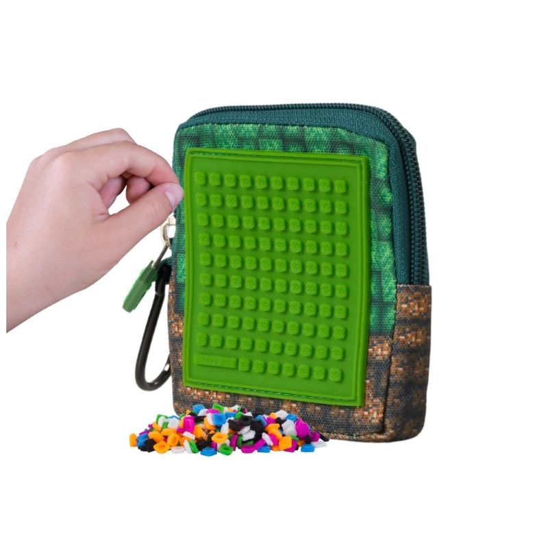 Симпатично портмоне с едно отделение от Pixie Crew, закопчаващо се с цип и има карабинер, който позволява закачането му на чанта или панталон. Благодарение на силиконовия панел, детето ще може да сменя дизайна на портмонето всеки ден, подреждайки всички пиксела в комплекта.