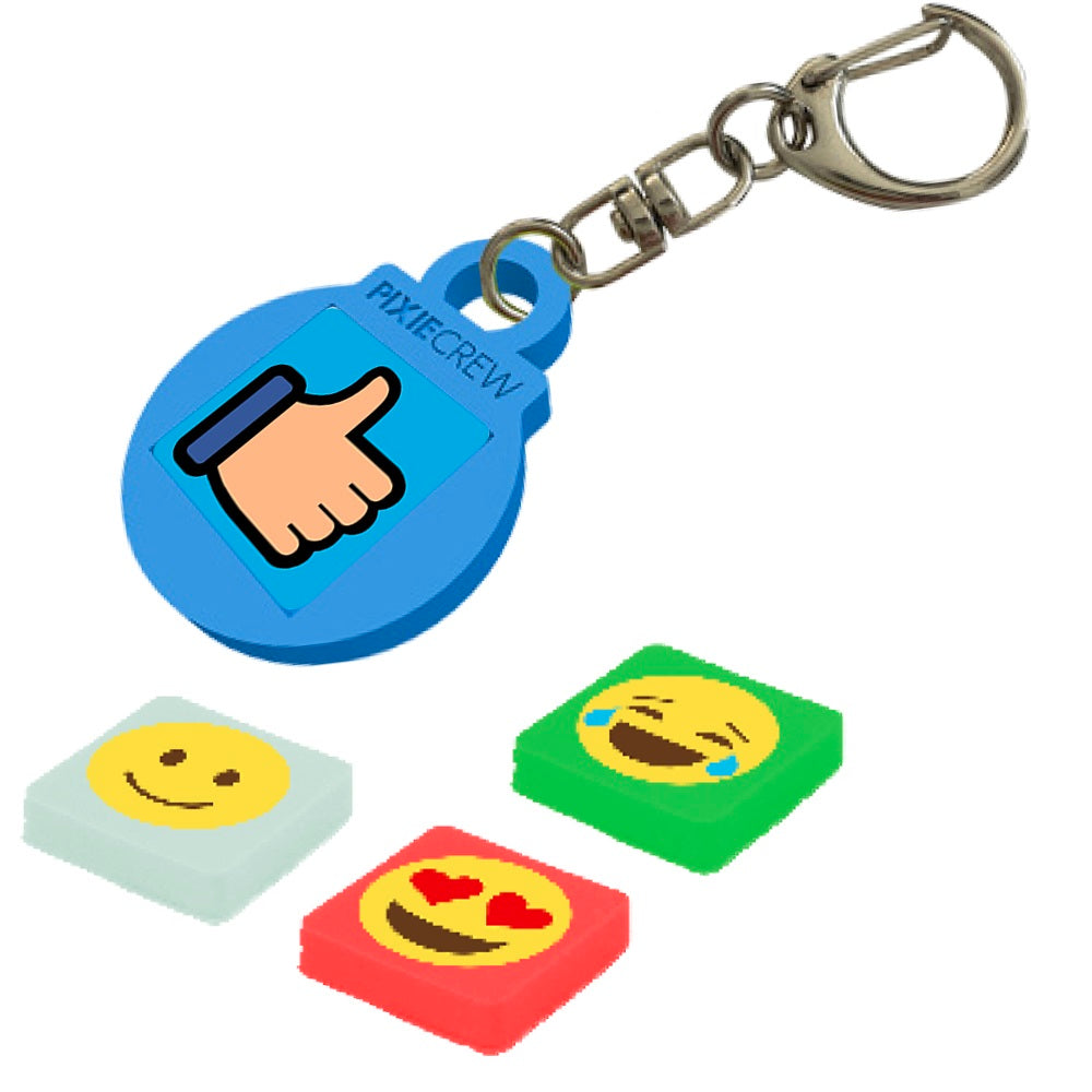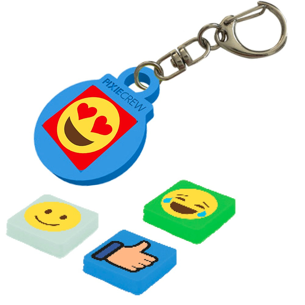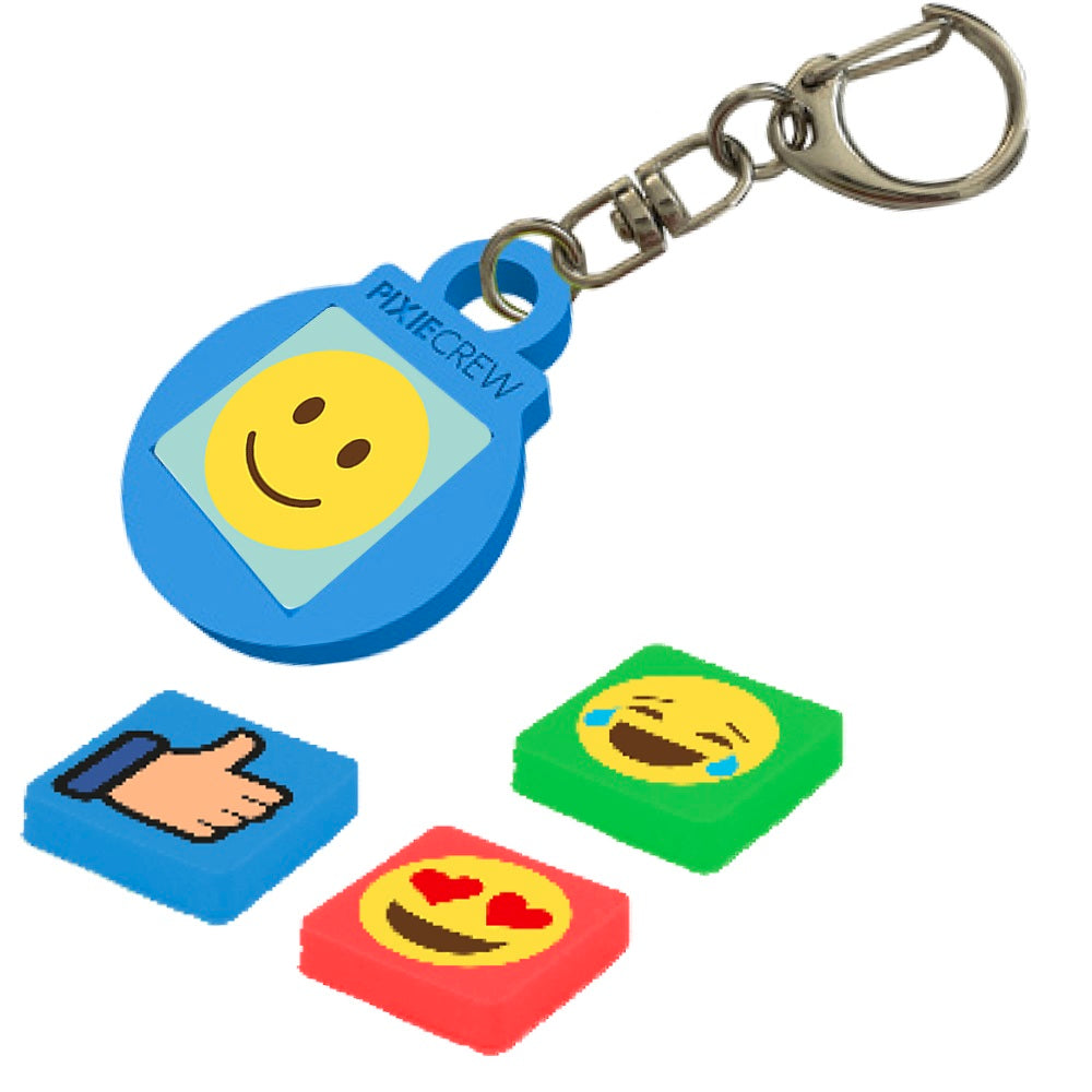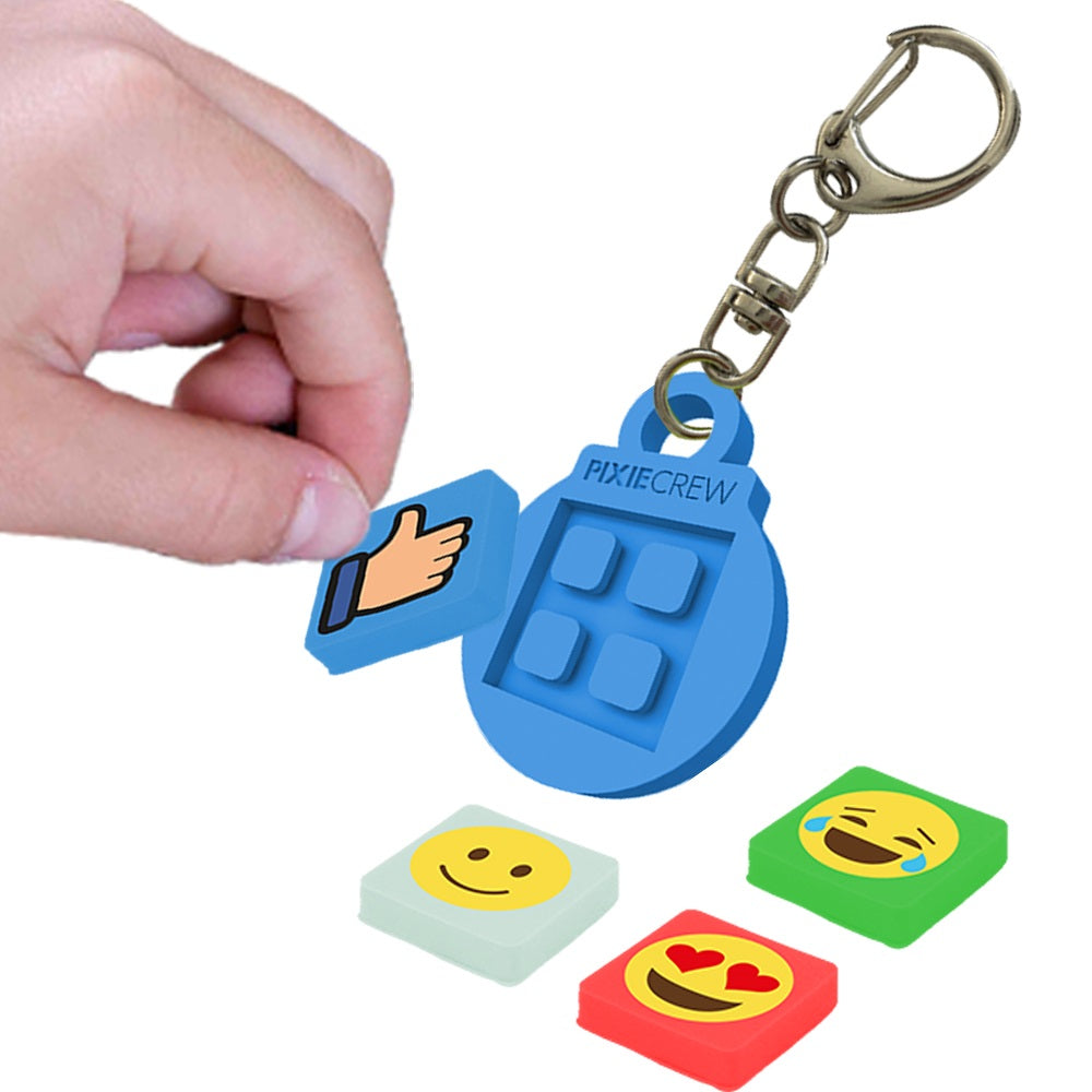 Силиконов ключодържател в син цвят, който е подходящ за малки и големи. Развихрете въображението си и изразете своето настроение със стил. Ключодържателят е в кръгла форма и в него се поставя по един от всички четири мултипиксела с емотикони, които могат да се сменят всеки ден. Хубавото е, че пикселите е възможно да се използват повторно във всички продукти на PIXIE CREW.