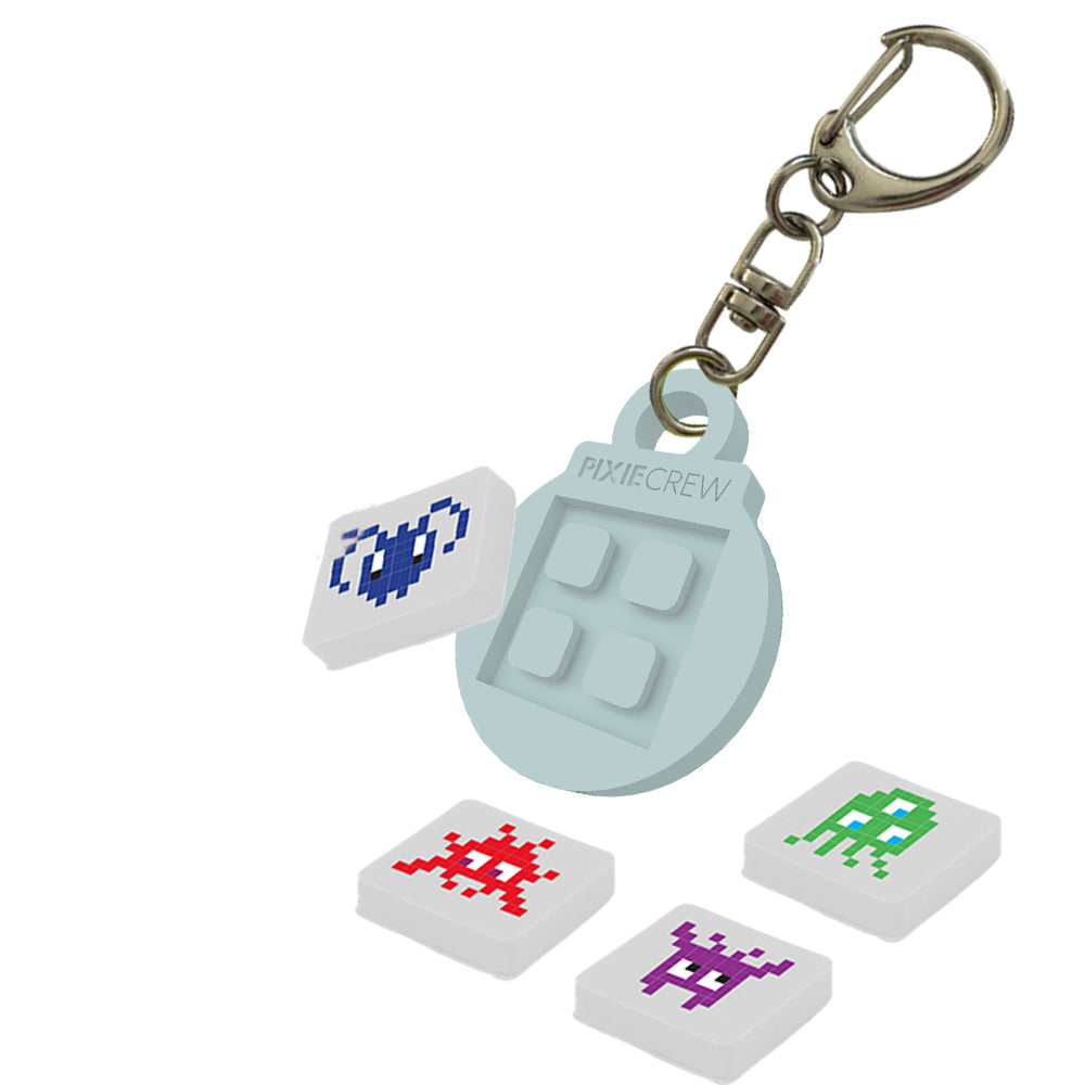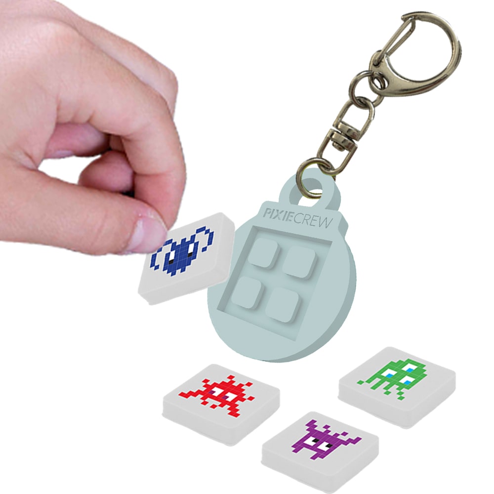 Силиконов ключодържател в светещ в тъмното, който е подходящ за малки и големи. Развихрете въображението си и използвайте пикселите, както поискате. Ключодържателят е в кръгла форма и в него се поставя по един от всички четири мултипиксела, които могат да се сменят всеки ден. Хубавото е, че пикселите е възможно да се използват повторно във всички продукти на PIXIE CREW.