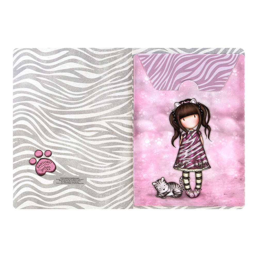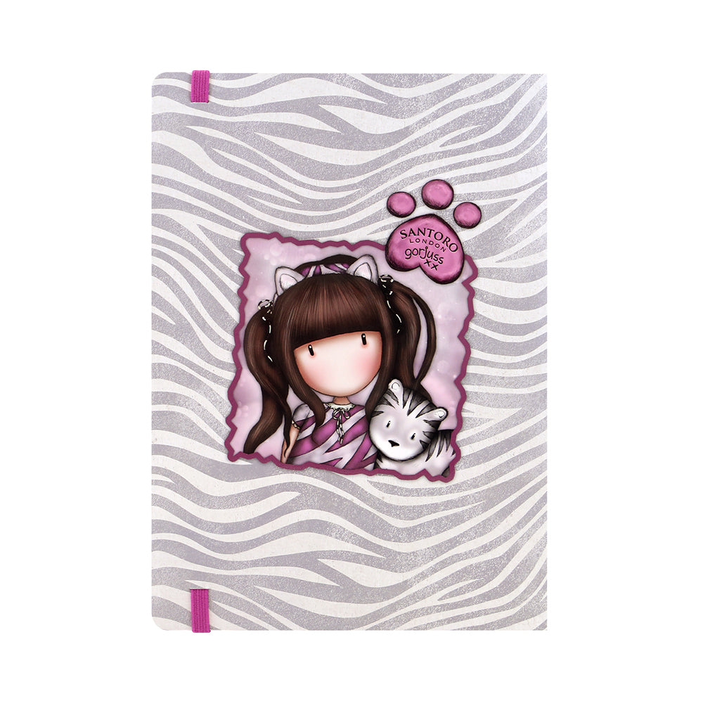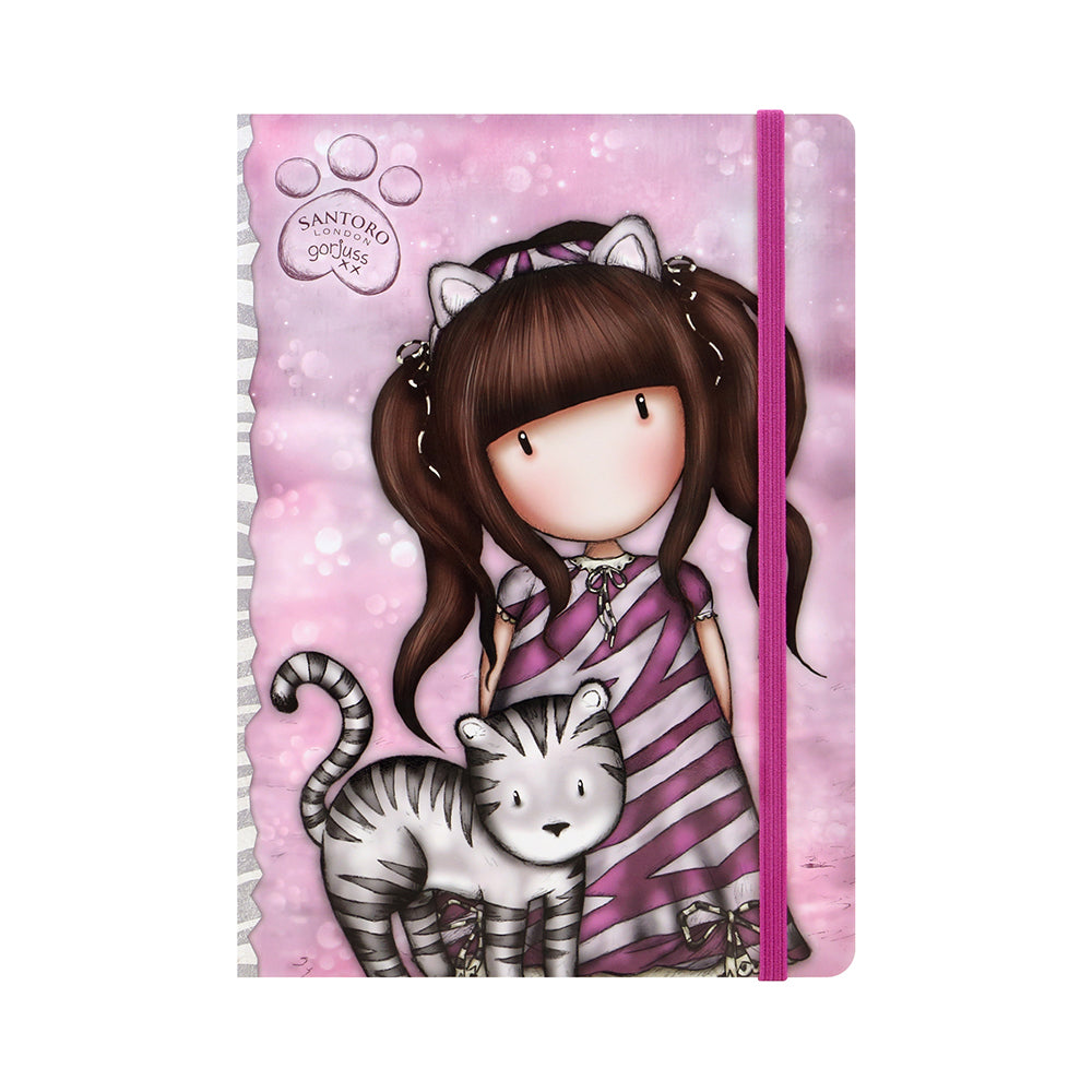 Комплекта съдържа дневник в розов цвят със 160 страници с еластично затваряне и вътрешен джоб за съхраниение. Върху корицата има принт на Gorjuss момиче с кафяви коси и котешки уши.