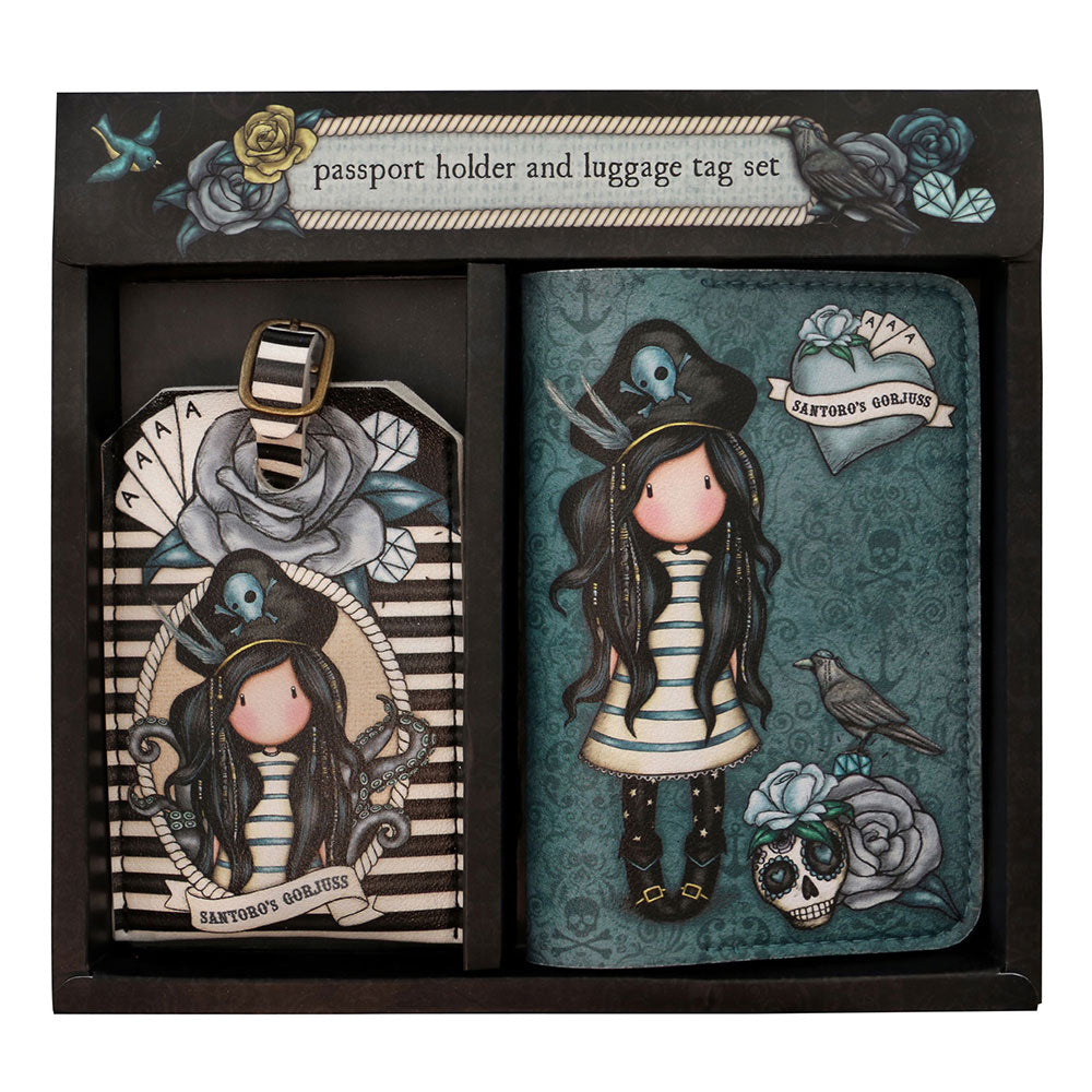 Комплект калъф за паспорт и етикет за багаж Santoro Gorjuss Black Pearl
