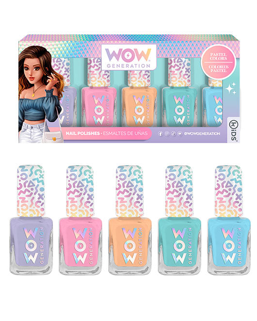 Цветен комплект за малки принцеси - 5 лака за нокти в пастелни нюанси, защото знаем, че момичетата искат да приличат на мама. Комплектът от WOW Generation съдържа лакове, предназначени за деца, в лилаво, розово, жълто, зелено и синьо.