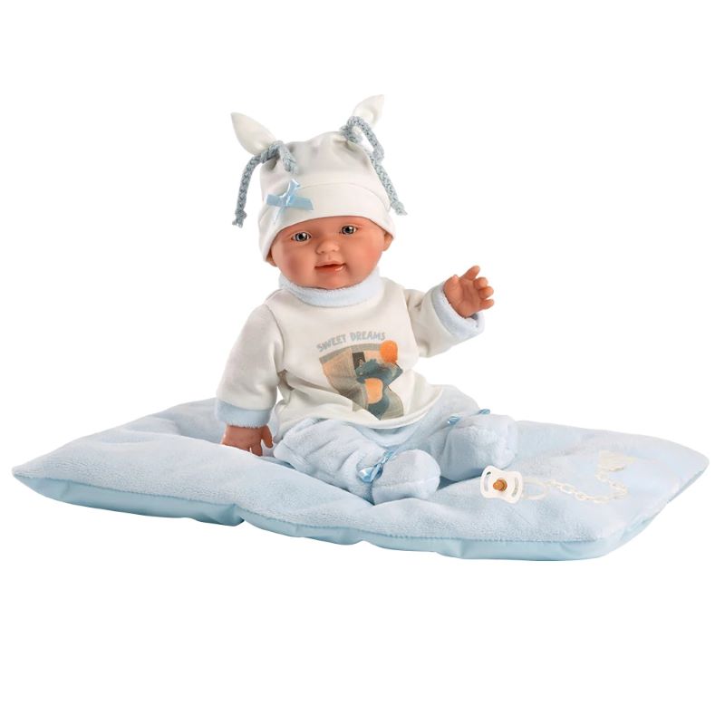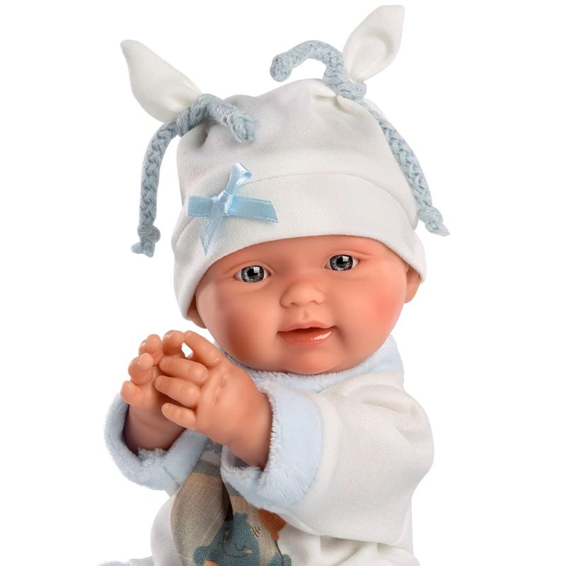 Куклата е облечена в сладка пижама и бяла шапка на главата. Тяло от винил. Подвижни крайници.Куклата е изработена от висококачествени мек винил и с внимание към детайлите.Bebito е опакована в красива картонена кутия. Подходяща за подарък за всяко дете, което обича кукли или иска да добави нов приятел към колекцията си.