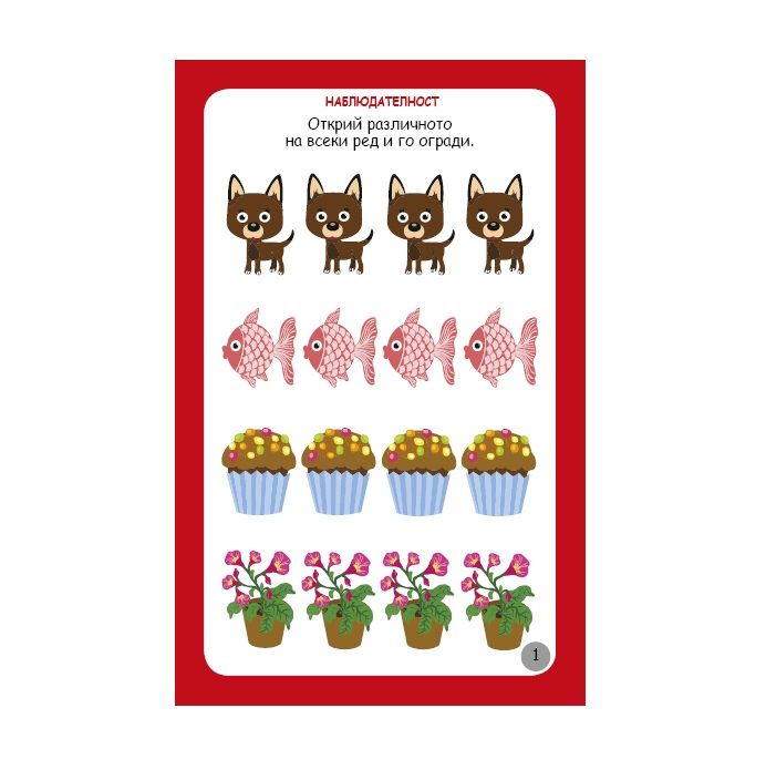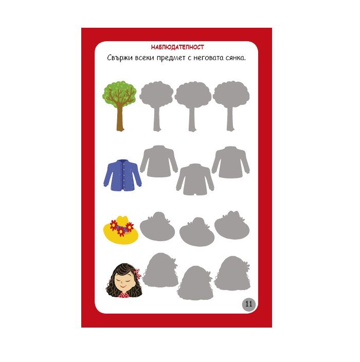 Има специални упражнения за развитие на наблюдателността, паметта и концентрацията. Докато играе, детето развива логиката и съобразителността, разпознава емоциите, разказва истории. Затвърждава знанията си за буквите, числата, формите.