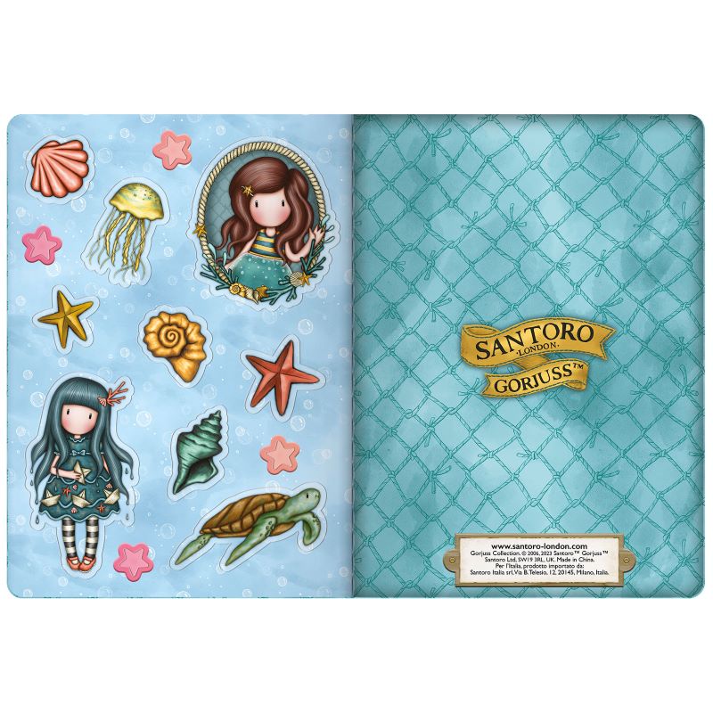 Малка тетрадка със стикери Gorjuss Deep Secrets включва 30 страници с редове, 30 бели страници и 26 стикера в дизайните на Deep Secrets и Washed Ashore.