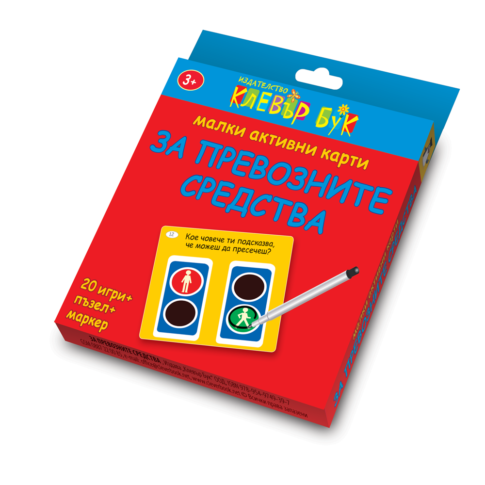 Специално за най-малките - за да научат повече за превозните средства и безопасността, забавлявайки се! На лицевата част ка картите има 20 картинки и 20 въпроса, а на гърба - пъзел. Това е ново подобрено издание! Кутията е с размер - 123х123х25мм, а маркерът вътре е голям!