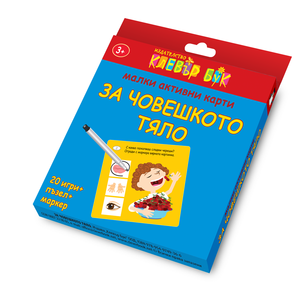 Специално за най-малките - за да научат частите на човешкото тяло, забавлявайки се! На лицевата част ка картите има 20 картинки и 20 въпроса, а на гърба - пъзел. Това е ново подобрено издание! Кутията е с размер - 123х123х25мм, а маркерът вътре е голям!