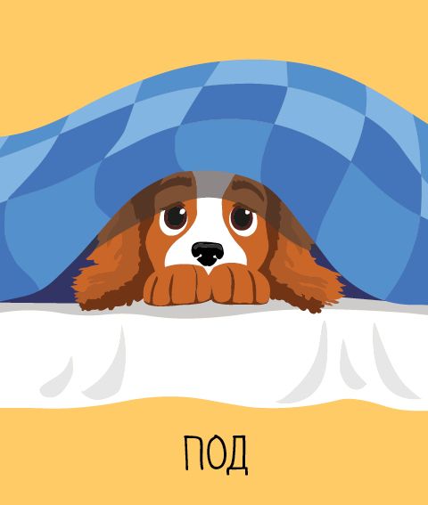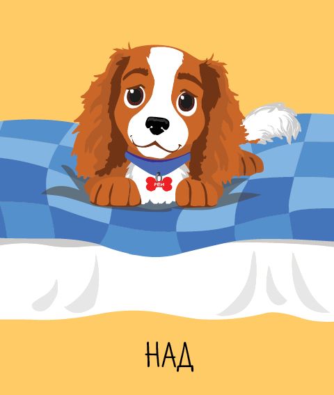 С помощта на кученцето Рей и котката Бела детето учи посоки, местоположения и предлози - под, над, пред, зад, ляво, дясно.