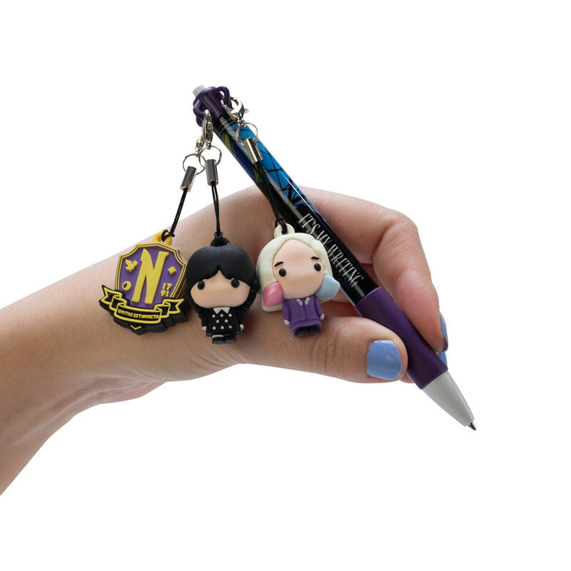 Wednesday Addams Комплект химикал и един от шест специални висулки (2.5-3 см), които могат да се сменят и използват за декорация на други писалки.