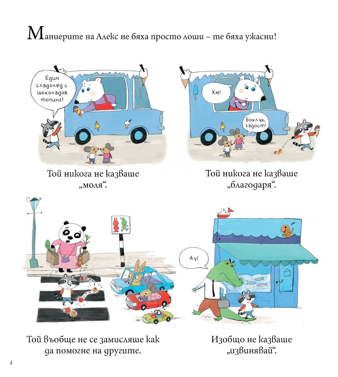 на изящния език, учи се на добри маниери на масата в Трапезарията на приличието - и накрая става добър приятел в Деня на добрите другарчета...