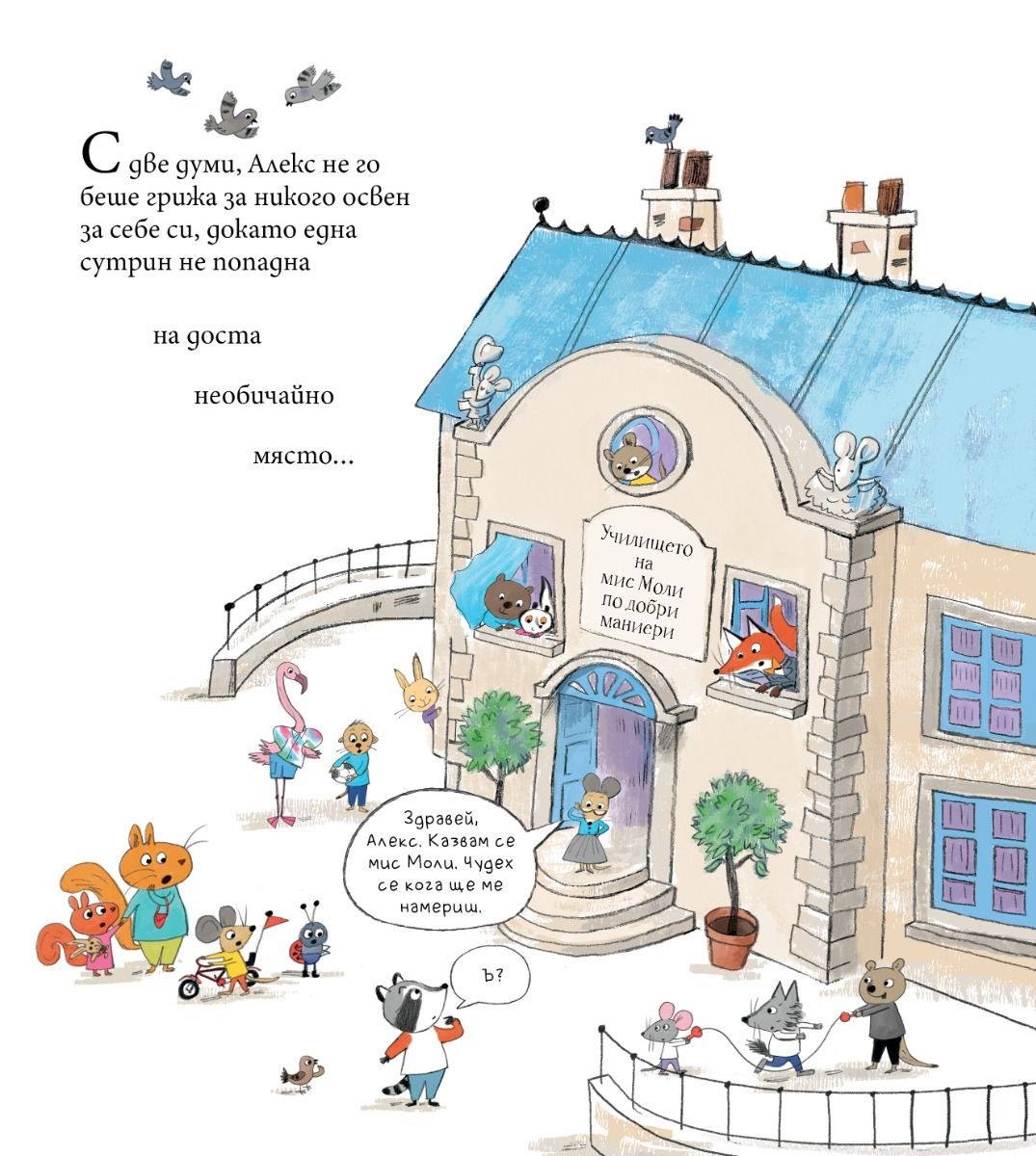 Докато един ден не попада на училището на Мис Моли за добри маниери. Бъдете с него по време на уроците му с мис Моли, докато се учи да обръща внимание в Лабораторията по внимателно слушане, изследва Библиотеката