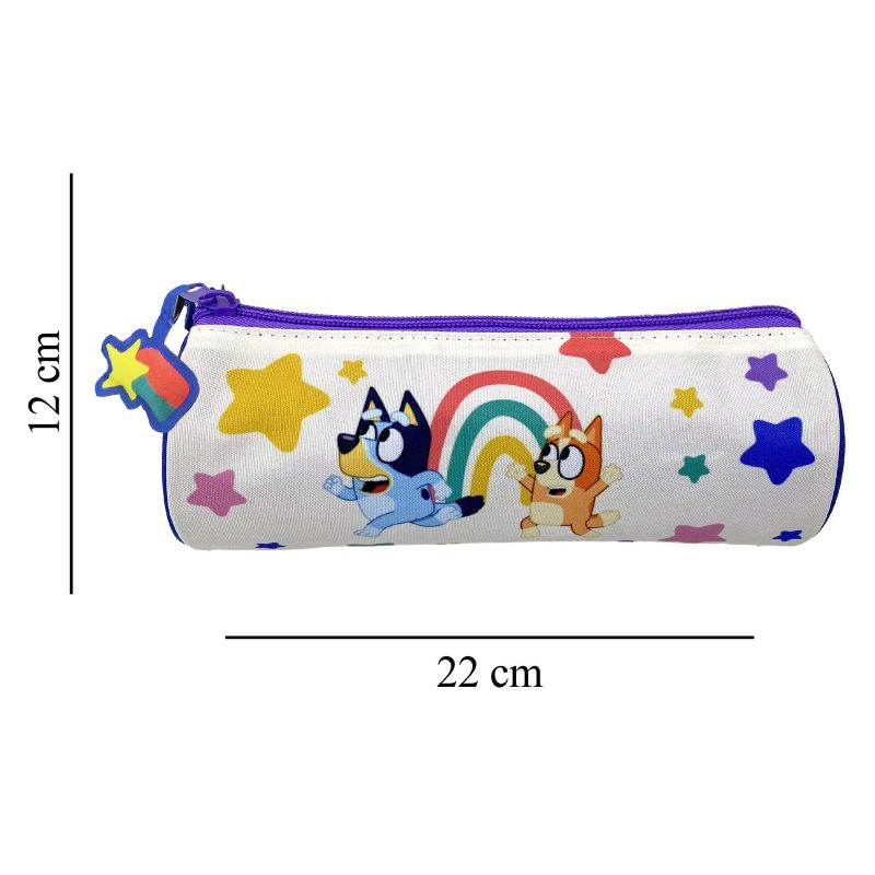 Превърнете ученето в забавление с Bluey. Този ярък, многоцветен, с цилиндричен дизайн несесер , който привлича вниманието с изображения на Bluey и Bingo, е идеалният спътник за всяко дете в предучилищна възраст.