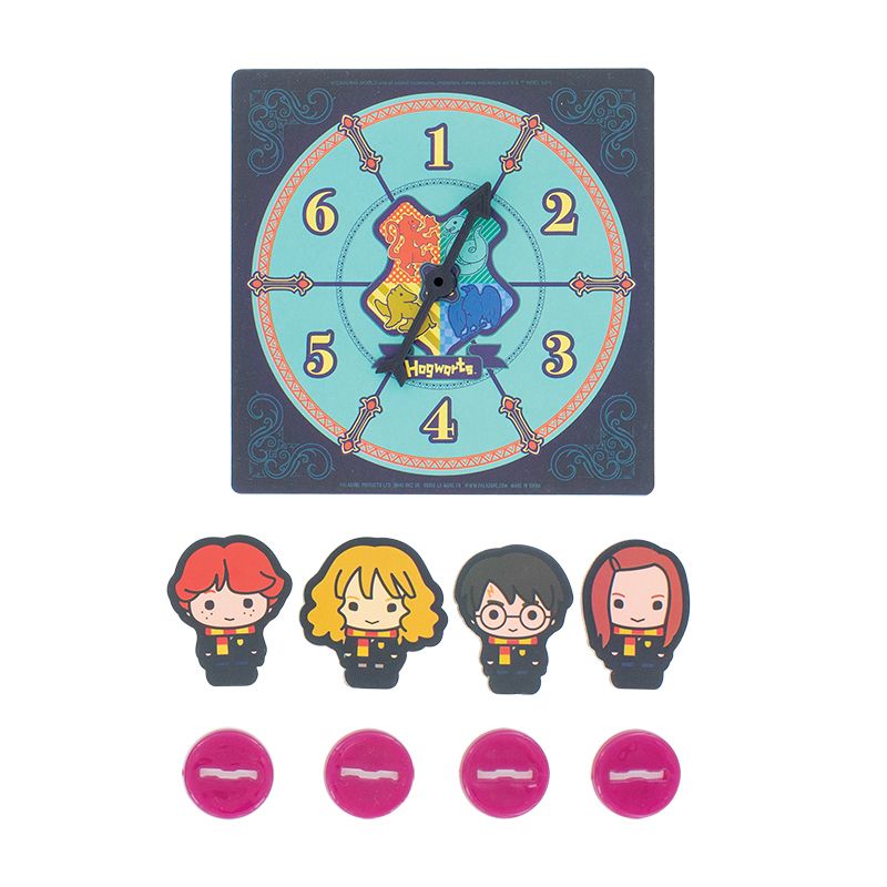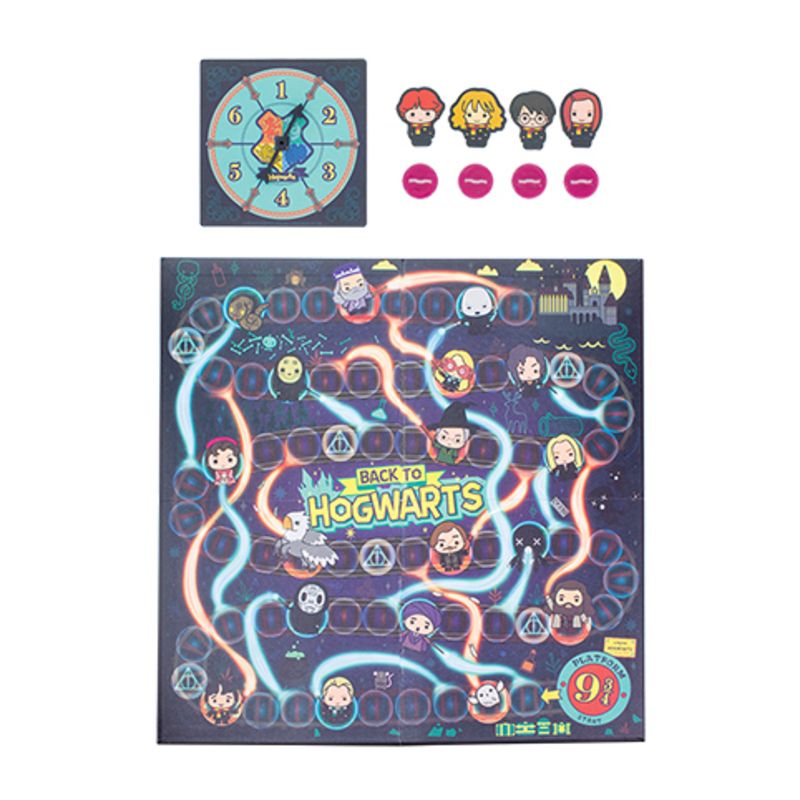 Семейна игра "Обратно в Хогуортс" на Harry Potter е базирана на класическата и популярна "Змии и стълби", но е с добавени магически обрати.За да спечелите тази лесна за игра игра, трябва само да се състезавате с опонентите си и да стигнете първи с героя си от платформа 9 ¾ през редица препятствия до училището за магии и вълшебства Хогуортс.