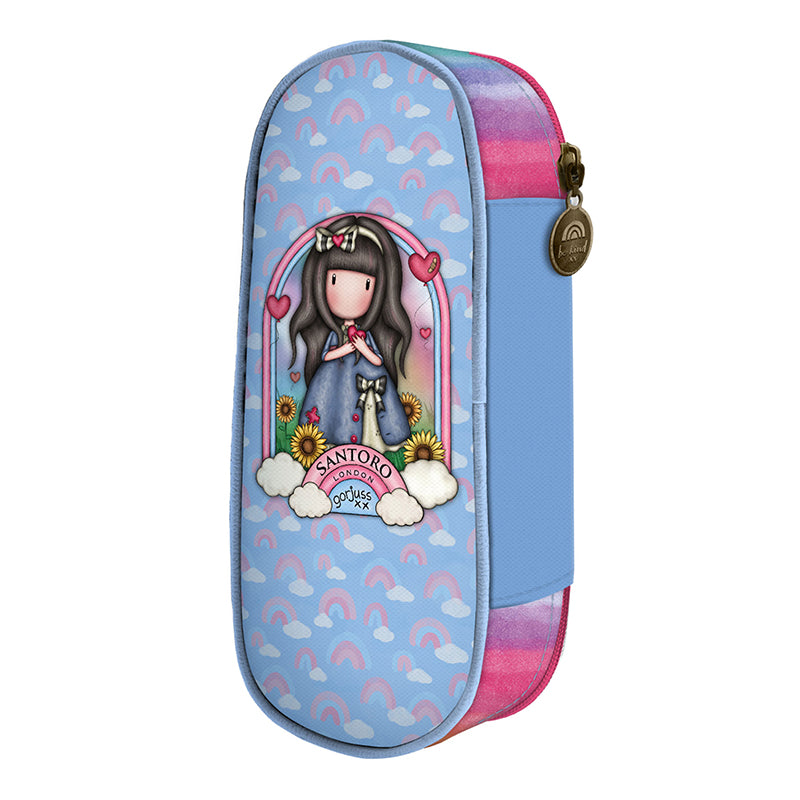 Ученически объл несесер ,,Be Kind To Yourself” с едно голямо отделение. Удобен за ученически пособия като химикалки, моливи и линия. Отвътре несесерът е син и има джоб, в който може да се сложи гума, острилка или нещо малко. Метален объл цип с логото на Santoro Gorjuss и надпис ,,Be Kind”.Размери: 10 х 23 х 6 см