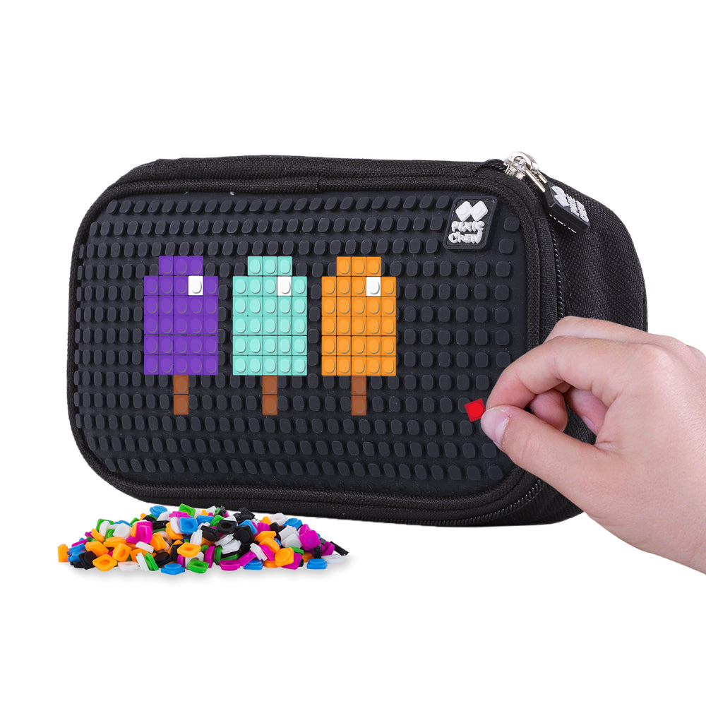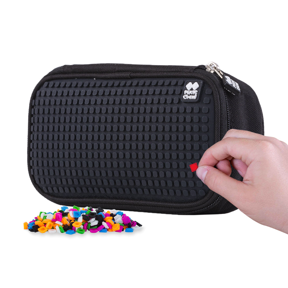 Удобен несесер в овална форма, който е достатъчно просторен, че да събере всички ученически принадлежности - пастели, флумастери и химикалки. В несесера Pixie Crew има дванадесет пръстенчета за химикалки и моливи за по-добра организация, а пространството под капака позволява свободното разпределение на останалите аксесоари. Закопчаването е възможно, с помощта на големия цип. Благодарение на големия силиконов панел, намиращ се на капака на несесера, детето ще може да сменя дизайна му всеки ден, подреждайки всички разноцветни пиксели в комплекта. Изработката е висококачествена и е от полиестер и силикон. Оригинален лицензен продукт.