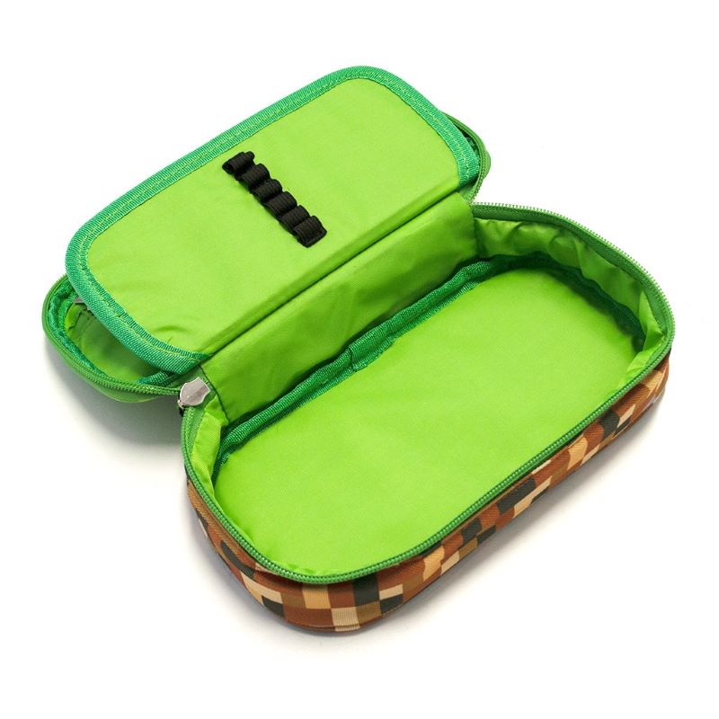 Удобен несесер в овална форма, който е достатъчно просторен, че да събере всички ученически принадлежности - пастели, флумастери и химикалки. В несесера Pixie Crew има дванадесет пръстенчета за химикалки и моливи за по-добра организация, а пространството под капака позволява свободното разпределение на останалите аксесоари. Закопчаването е възможно, с помощта на големия цип. Благодарение на големия силиконов панел, намиращ се на капака на несесера, детето ще може да сменя дизайна му всеки ден, подреждайки всички черни пиксели в комплекта. Изработката е висококачествена и е от полиестер и силикон.