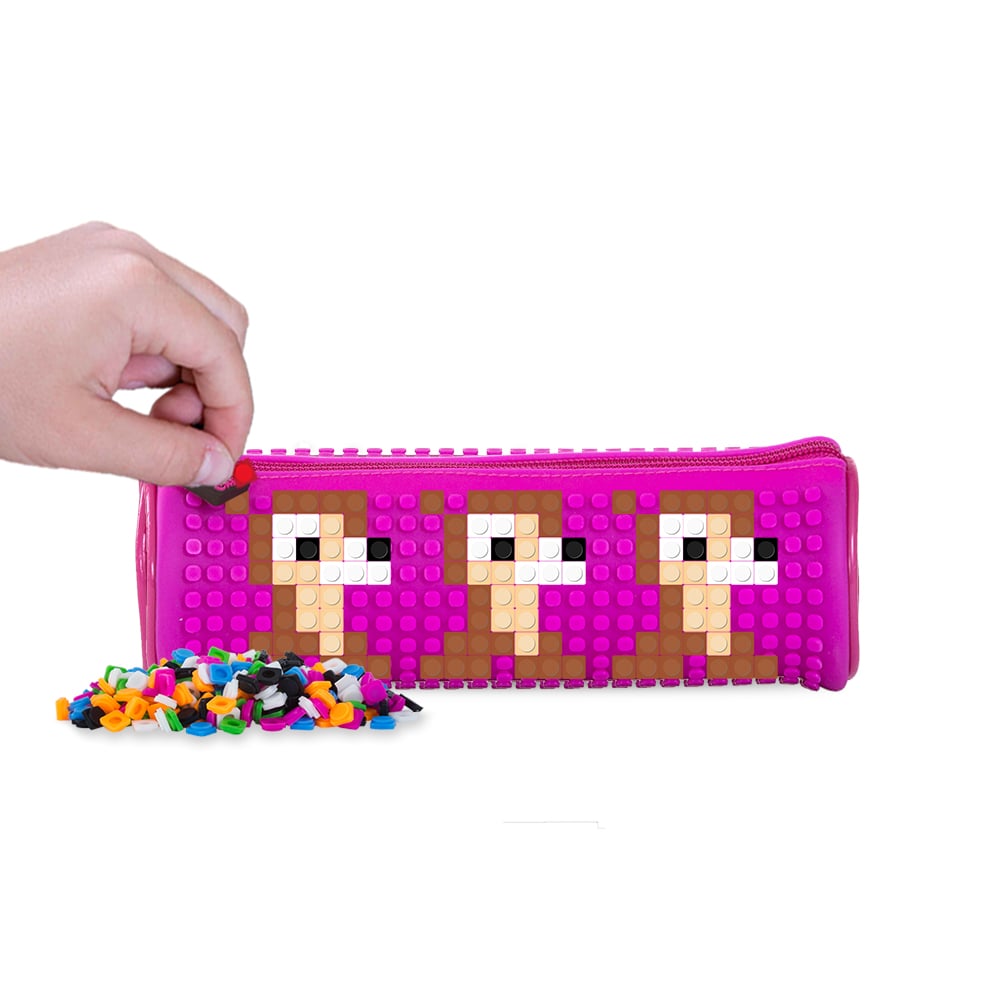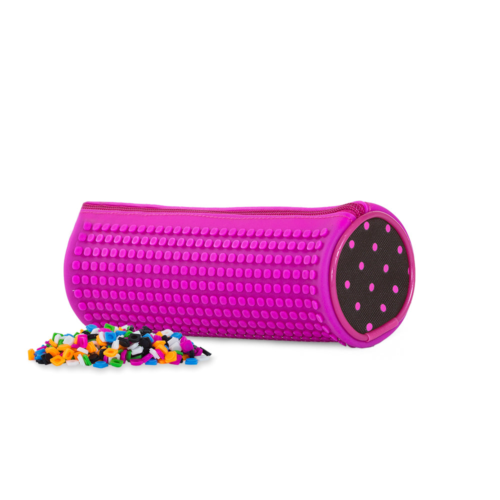 Овален несесер Pixie Crew, затварящ се с цип и обвит в цикламен силикон, на който момичетата могат да развихрят своето въображение. В комплекта ще откриете и 100 цветни пиксела за тази цел, с които мога да се направят различни картинки.