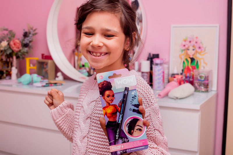 Очната линия и печатът към нея на WOW Generation са напълно безопасни и идеални за допълване на визията на момичетата, искащи да приличат на мама, както и на тези, изнасящи представления. Балерина, гимнастичка или певица, малката девойка със сигурност ще изглежда зашеметяващо на сцената с очната линия с цветен нюанс - черен или син. Печатите към нея са с форма на светкавица, сърце или звезда.