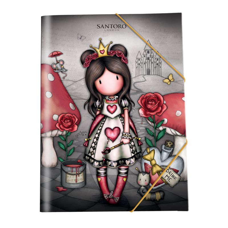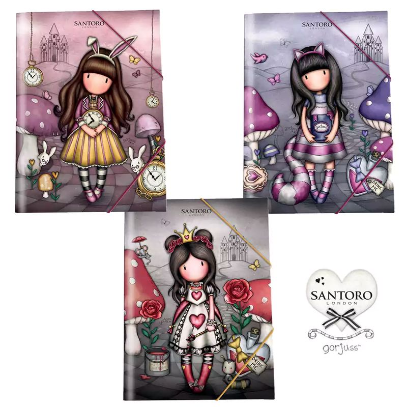 Папката Santoro Gorjuss е идеална за съхранение на документи, записки или рисунки с формат А4, а удобното отваряне и затваряне с ластик осигурява бърз и лесен достъп до съдържанието ѝ. Папката се предлага в три цветни дизайна с Gorjuss момичетата от колекциите Finding My Way, Just One Second и Cheshire Cat.