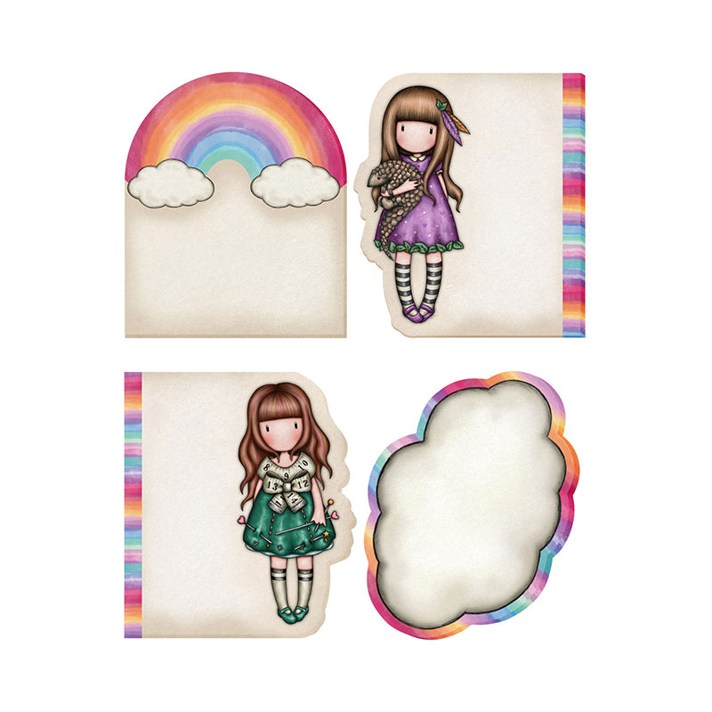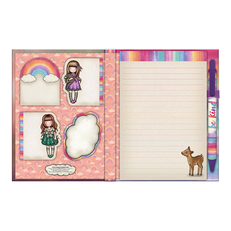 С планера с аксесоари ,,Be Kind To All Creatures”, вашето дете ще може да си записва и планира, като идва с лепящи се бележки и химикалка. Планерът е лек, леснопреносим и е украсен с цветовете на дъгата. Лепящите бележки са 100 на брой като се разделят на 4-ри дизайна - две с Gorjuss момиче, една с дъга и една с формата на облак.Размери: 13 х 16.5 х 2 см