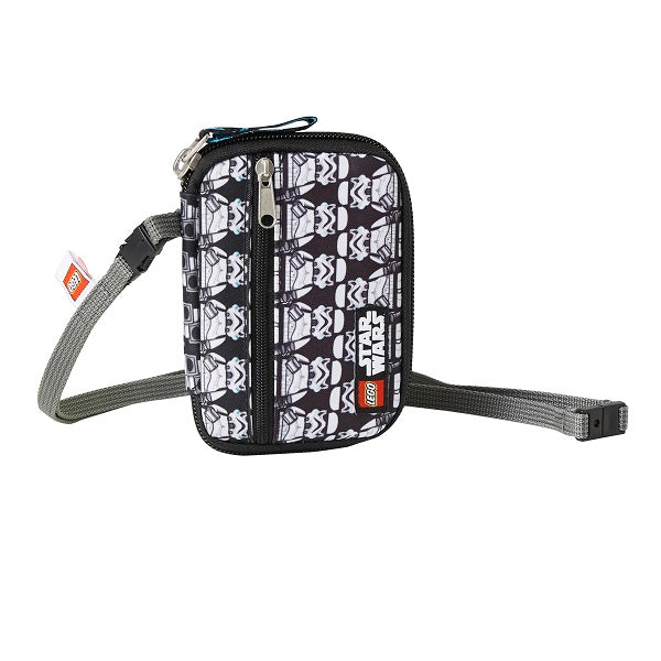 Уникално портмоне с любимите Star Wars щурмоваци. С няколко отделения за пари и карти. Има и прозрачно отделение отпред, в което детето може да съхранява картата си за пътуване в градския транспорт. Портмонето има допълнителна дълга връзка за закачане с катарами с дължина 2х40 см.