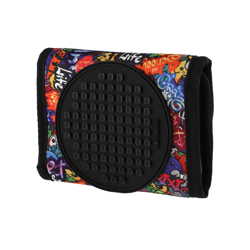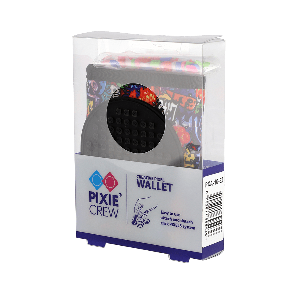 Симпатично портмоне от Pixie Crew, закопчаващо се с велкро, което ще предпази вещите в него от изпадане. Във вътрешността му ще откриете джобче за монети с цип, отделение за банкноти и две прозрачни джобчета, подходящи за кредитни карти, лична карта или снимки. Благодарение на силиконовия панел, детето ще може да сменя дизайна на портмонето всеки ден, подреждайки всички разноцветни пиксели в комплекта.