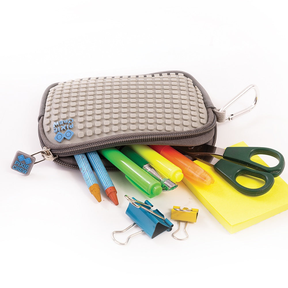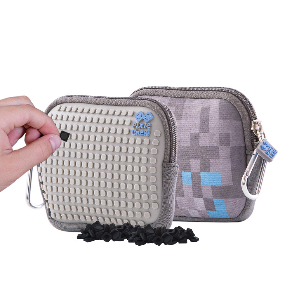 Портмоне със семпъл дизайн Pixie Crew в сив цвят. Изработката е от неопрен и силикон, което позволява лесно почистване. Силиконовият панел Pixie Crew е с пинчета, на които се кликват черни силиконови пиксели, които можете да намерите в комплекта. Портмонето е с едно отделение, затварящо се с цип, и е удобно за пренос на нужни в ежедневието неща - пари, кредитна карта и ключове.