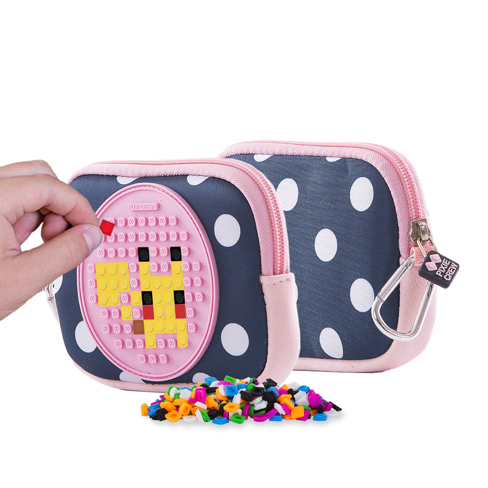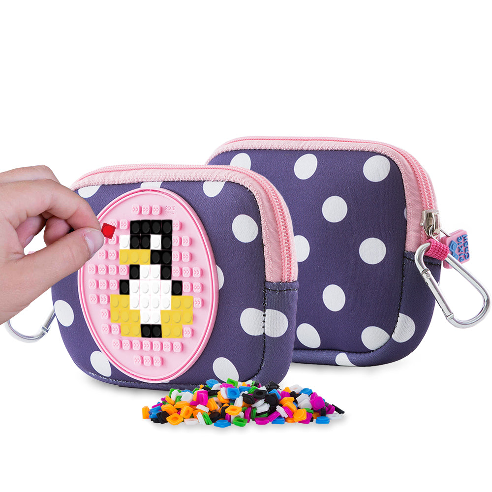 Симпатично портмоне от Pixie Crew, закопчаващо се с цип и има карабинер, който позволява закачането му на чанта или панталон. Благодарение на силиконовия панел, детето ще може да сменя дизайна на портмонето всеки ден, подреждайки всички 69 пиксела в комплекта.