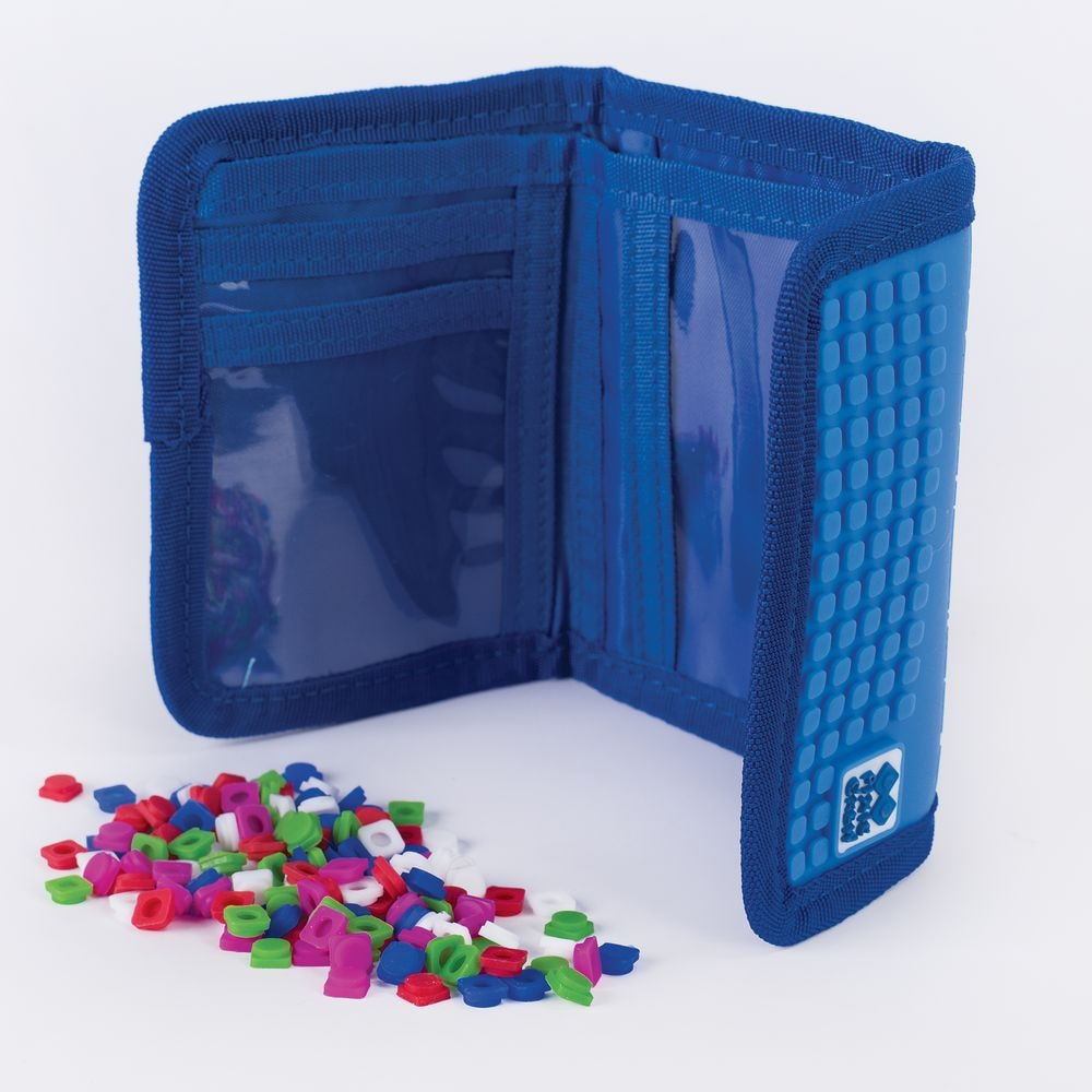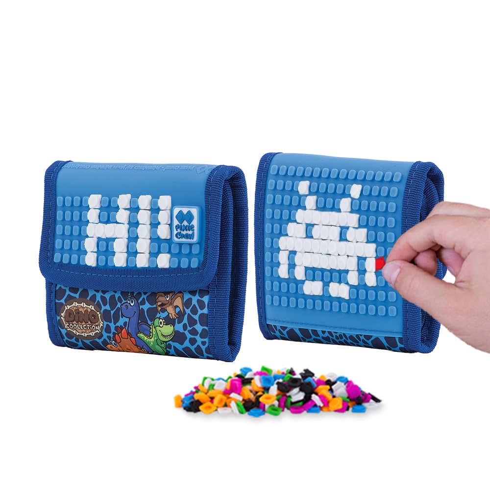 Симпатично портмоне от Pixie Crew, закопчаващо се с велкро, което ще предпази вещите в него от изпадане. Във вътрешността му ще откриете джобче за монети с цип, отделение за банкноти и две прозрачни джобчета, подхоящи за кредитни карти, лична карта или снимки. Благодарение на силиконовия панел, детето ще може да сменя дизайна на портмонето всеки ден, подреждайки всички пиксели в комплекта.