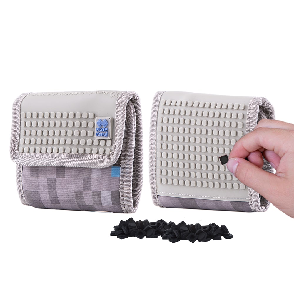 Симпатично портмоне от Pixie Crew, закопчаващо се с велкро, което ще предпази вещите в него от изпадане. Във вътрешността му ще откриете джобче за монети с цип, отделение за банкноти и две прозрачни джобчета, подхоящи за кредитни карти, лична карта или снимки. Благодарение на силиконовия панел, детето ще може да сменя дизайна на портмонето всеки ден, подреждайки всички черни пиксели в комплекта.