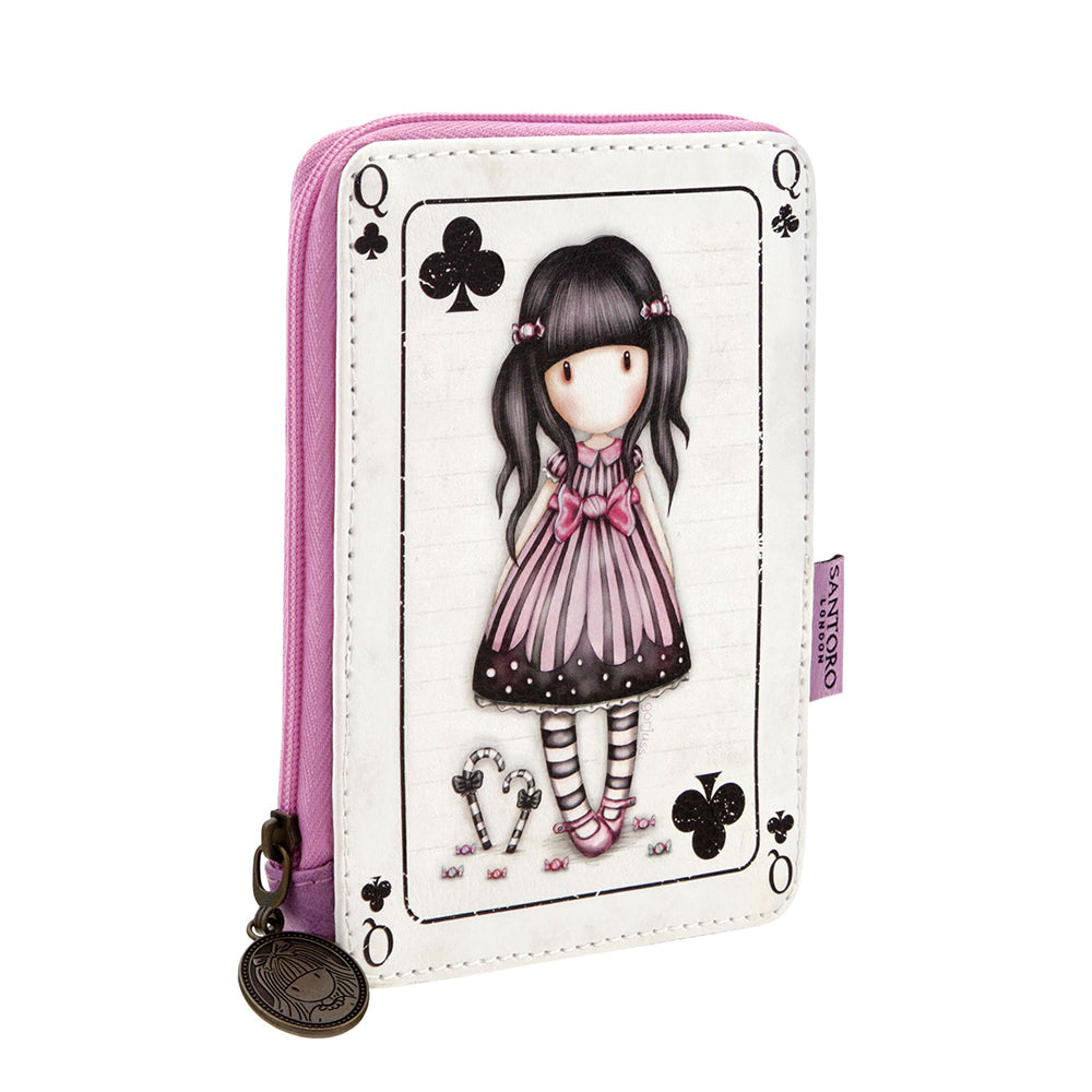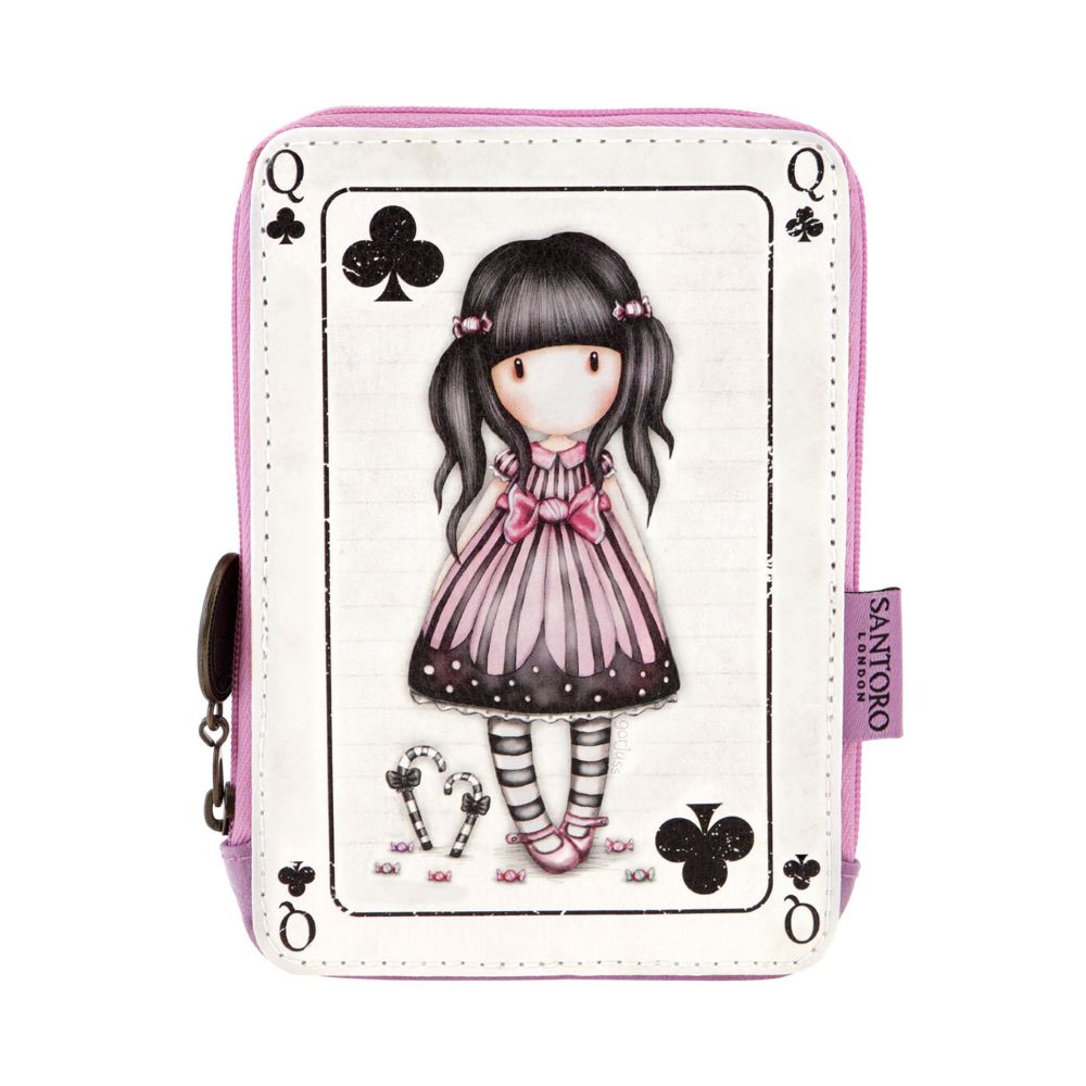 Затворено със здрав, надежден цип с метален лакиран накрайник.Пришит етикет Santoro Gorjuss.
