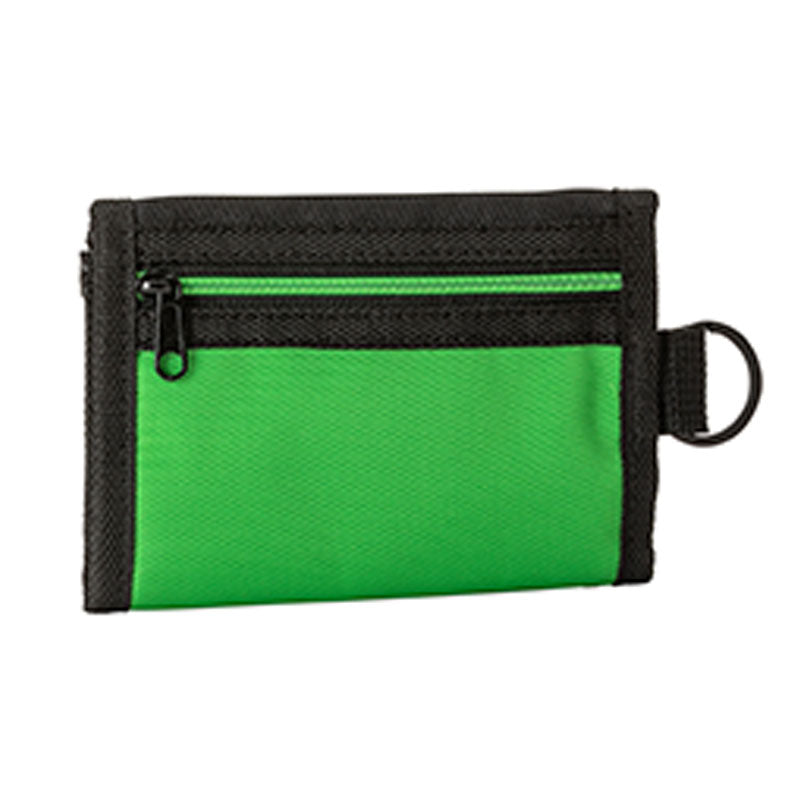 Разполага с вътрешно отделение за банкноти и множество отделения за карти и дребни вещи. Има халка ключодържател и външен джоб с цип за монети.