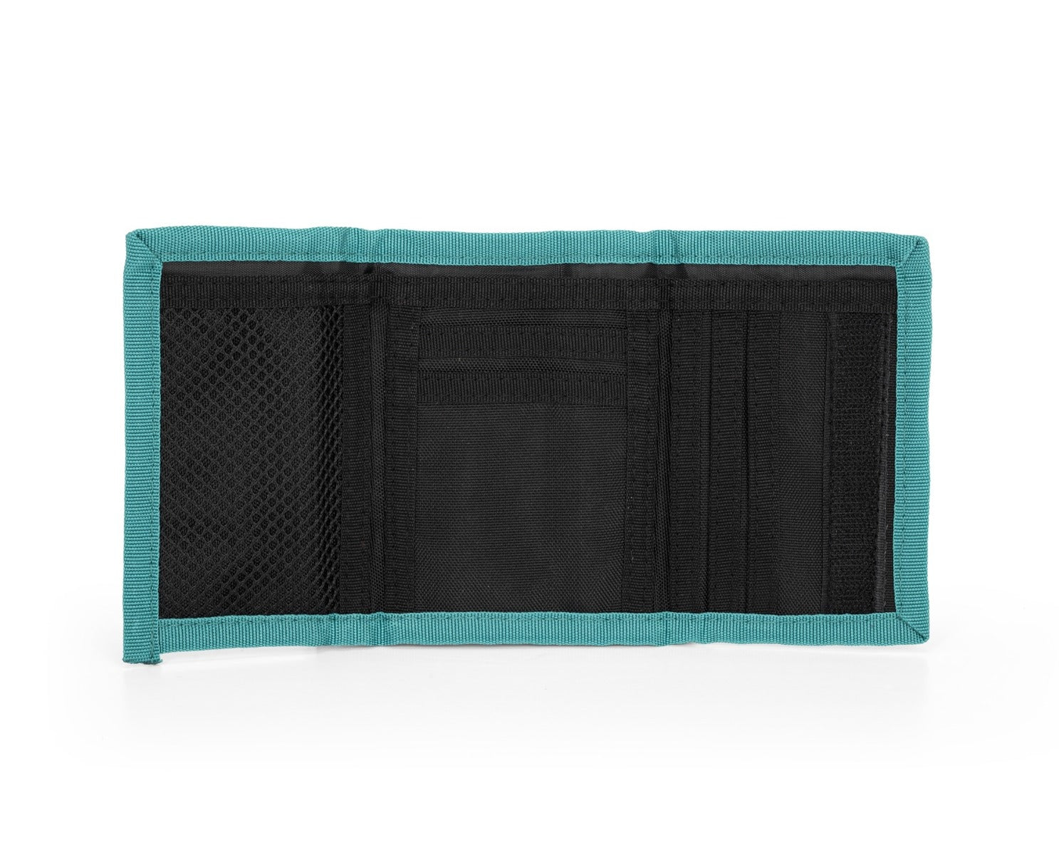 Разполага с отделение за банкноти, пет отделения за карти и едно мрежесто отделение за лична карта или документ със снимка. От задната страна има джоб за монети, затварящ се с цип. Портмонето се отваря и затваря чрез велкро лепенка.