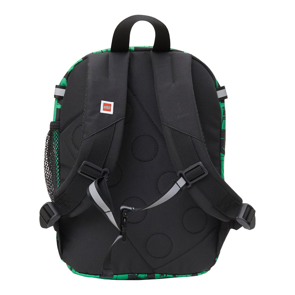 Раницата е с ергономичен, подплатен гръб, меки и регулируеми презрамки със здрави катарами. Закопчаване под гърдите за по-прецизно фиксиране към детския гръб, чрез светлоотразителна лента. Водоотблъскваща материя, която трудно задържа мръсотия. Стабилен цип с метален накрайник, завършващ със зелен iconic LEGO елемент. Здрава дръжка.