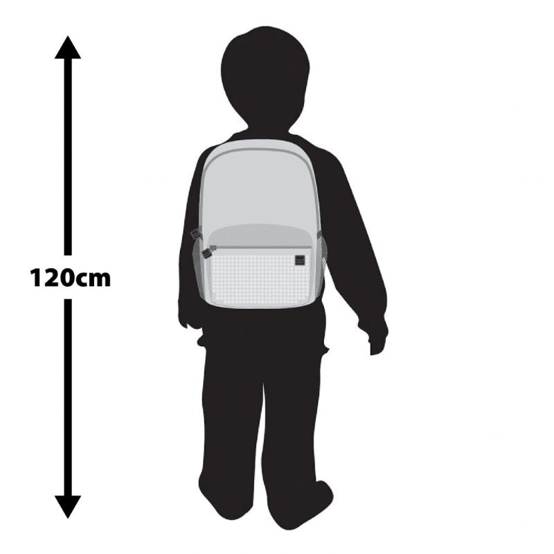 Детската раница Pixie Crew Adventure Grey. Презрамките ѝ са регулируеми и комфортни за носени, защото са подплатени. Благодарение на големия си обем от 10 л, в нея могат да се поберат много играчки и вкусна закуска. Раничката е изключително лека. На предния джоб има силиконов панел, на който мъниците ще могат да развихрят своето въображение, подреждайки всички 200 пиксела по различни начин.