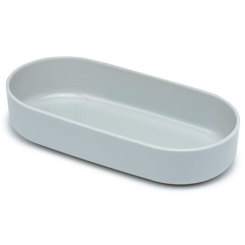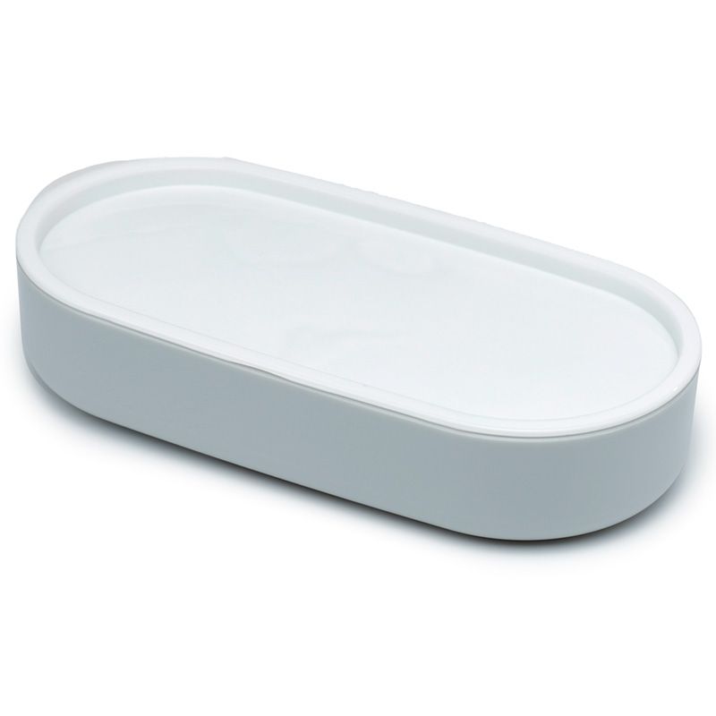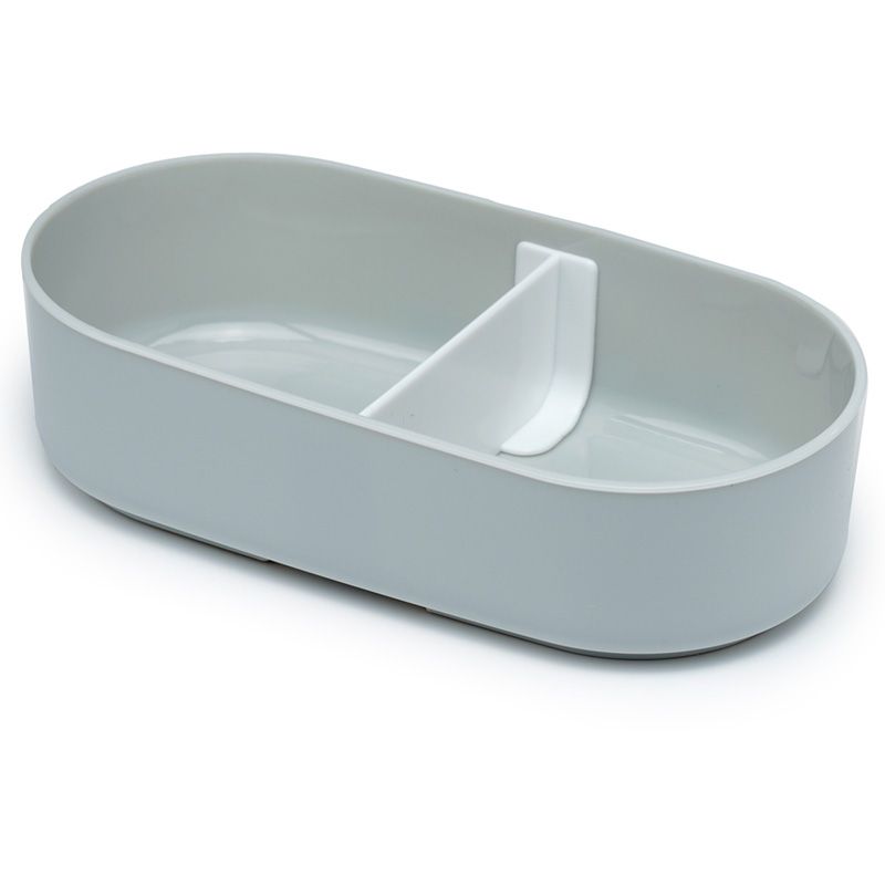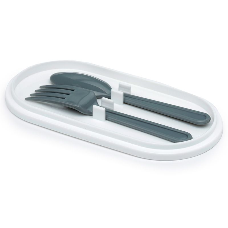 Съставен от долна светло сива основа с бял отделен капак. Горният за композицията капак затваря голямо също сиво отделение, преградено от подвижна стена. Съдържа тъмно сиви прибори (вилица и лъжица), лежащи в собствени гнезда на отделна основа.